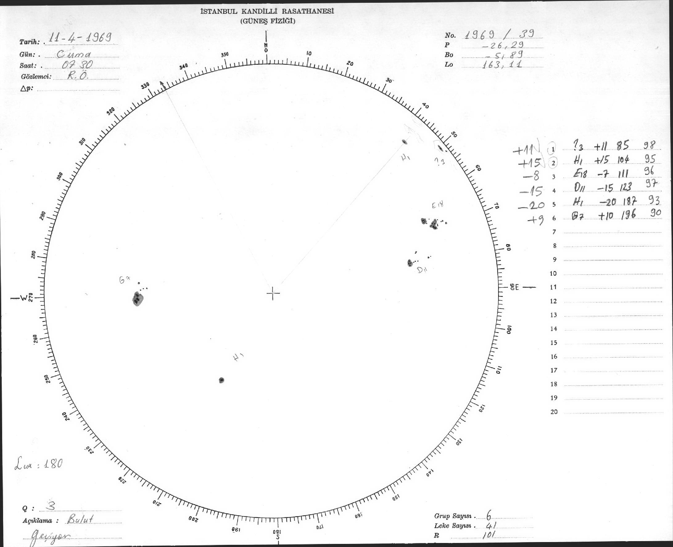Güneş Lekesi Çizimi - 11.04.1969