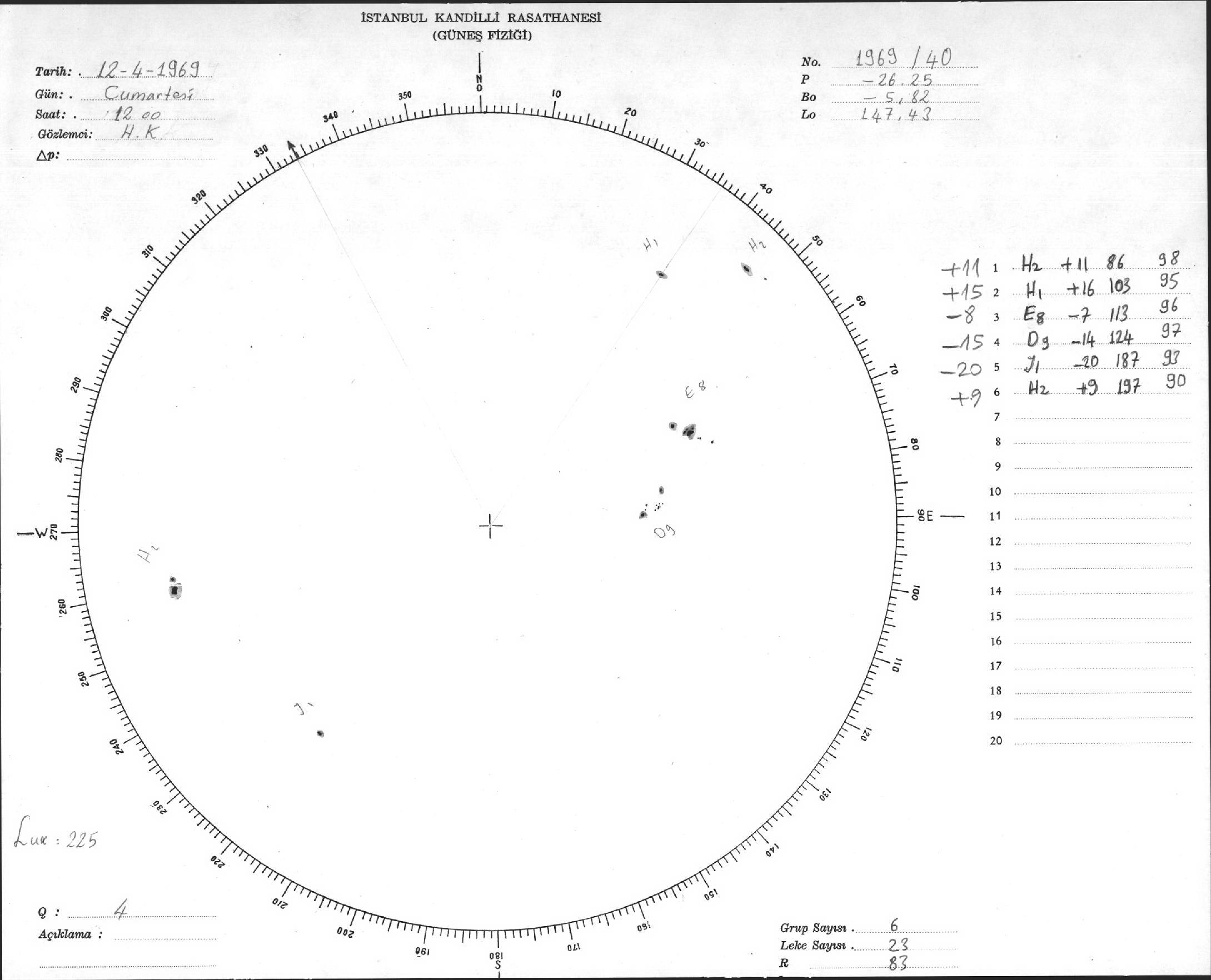Güneş Lekesi Çizimi - 12.04.1969