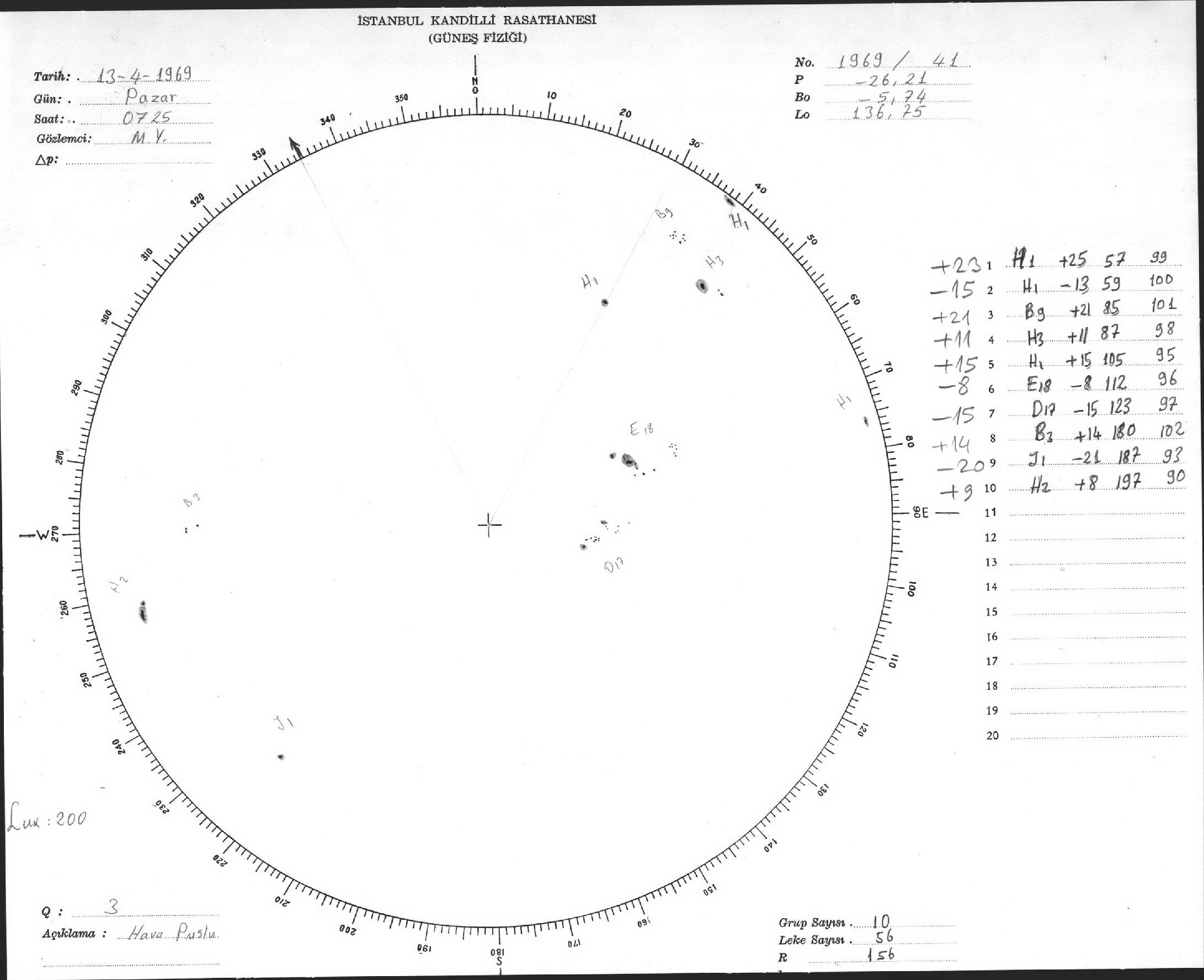Güneş Lekesi Çizimi - 13.04.1969