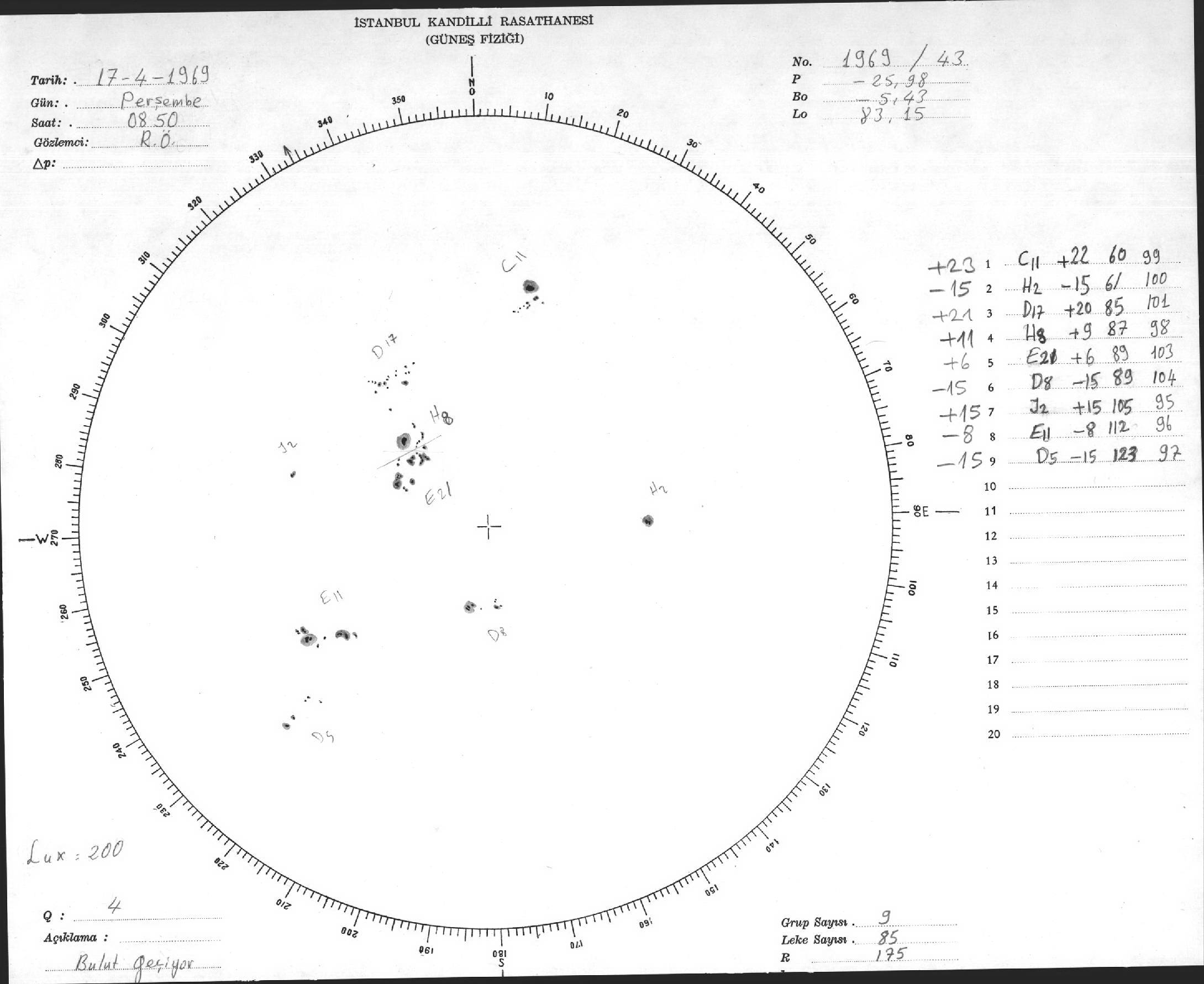 Güneş Lekesi Çizimi - 17.04.1969