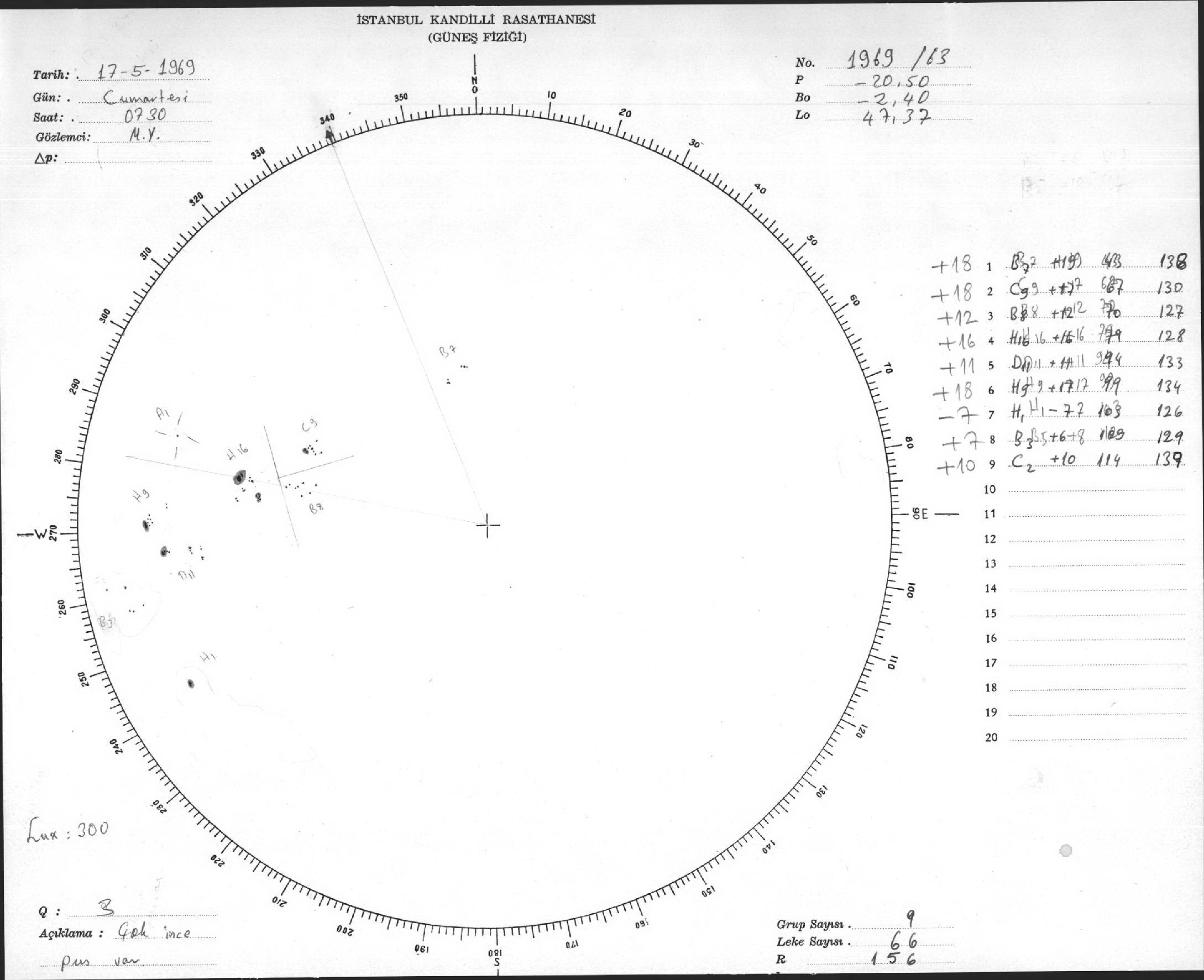 Güneş Lekesi Çizimi - 17.05.1969