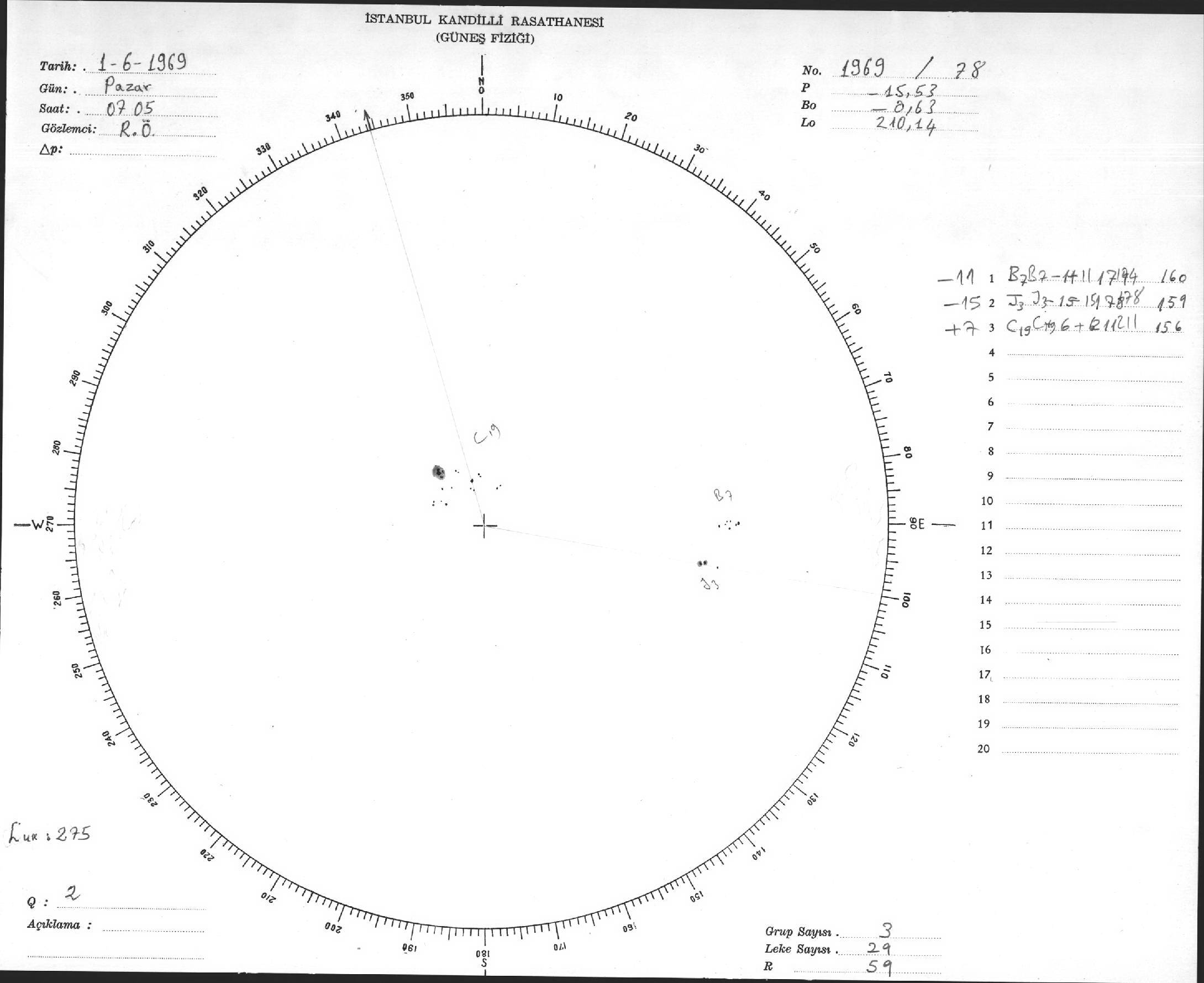 Güneş Lekesi Çizimi - 01.06.1969