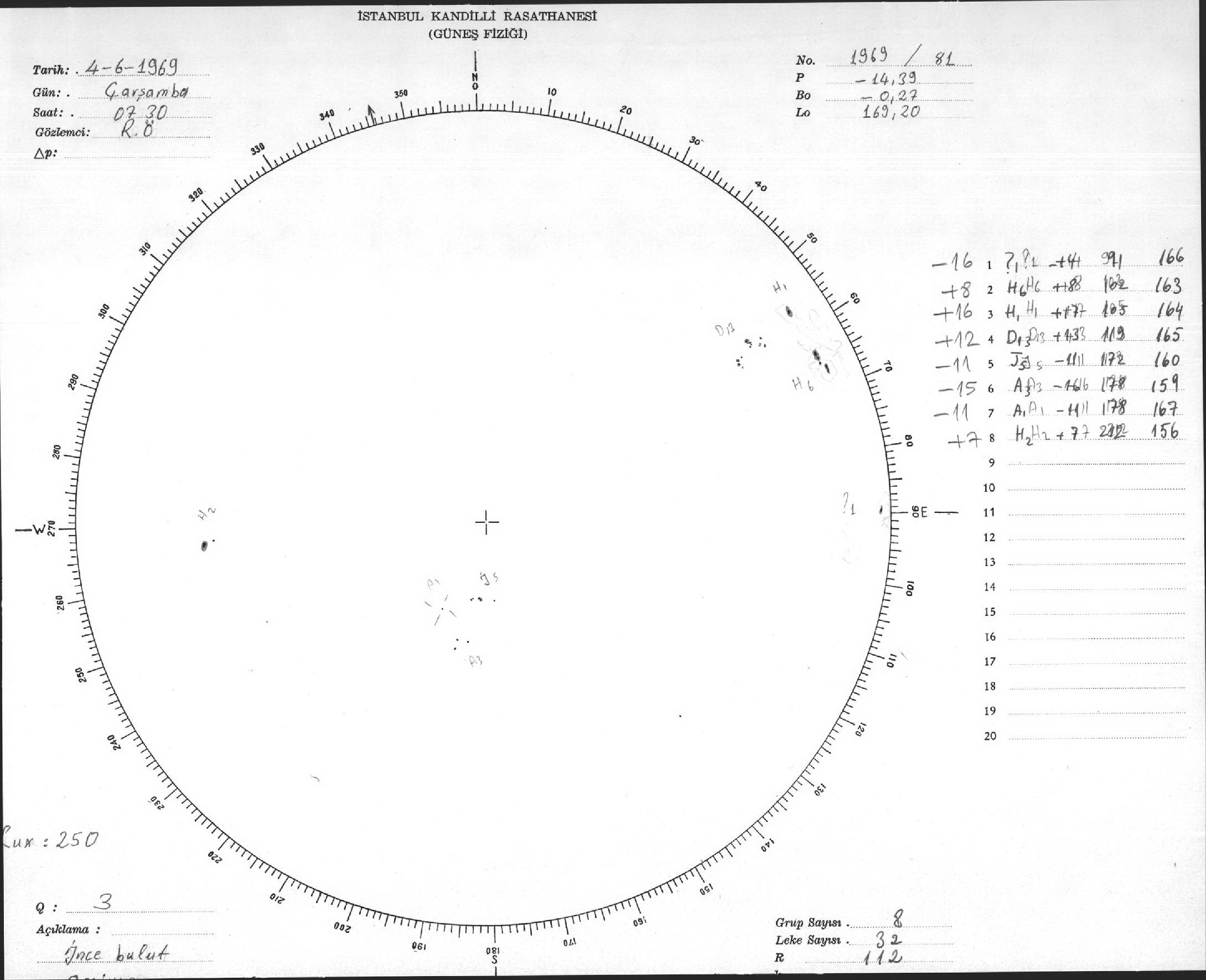 Güneş Lekesi Çizimi - 04.06.1969