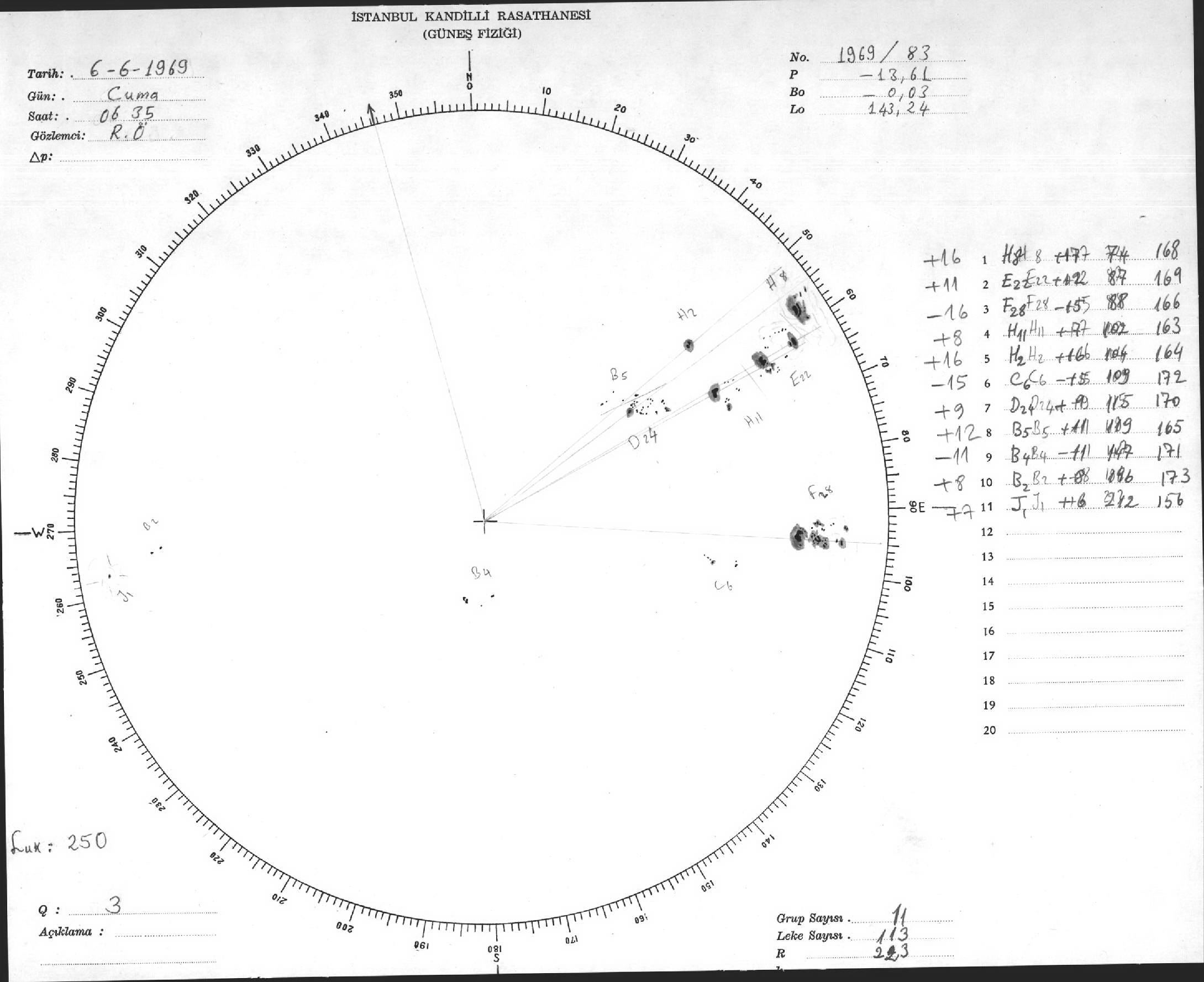 Güneş Lekesi Çizimi - 06.06.1969