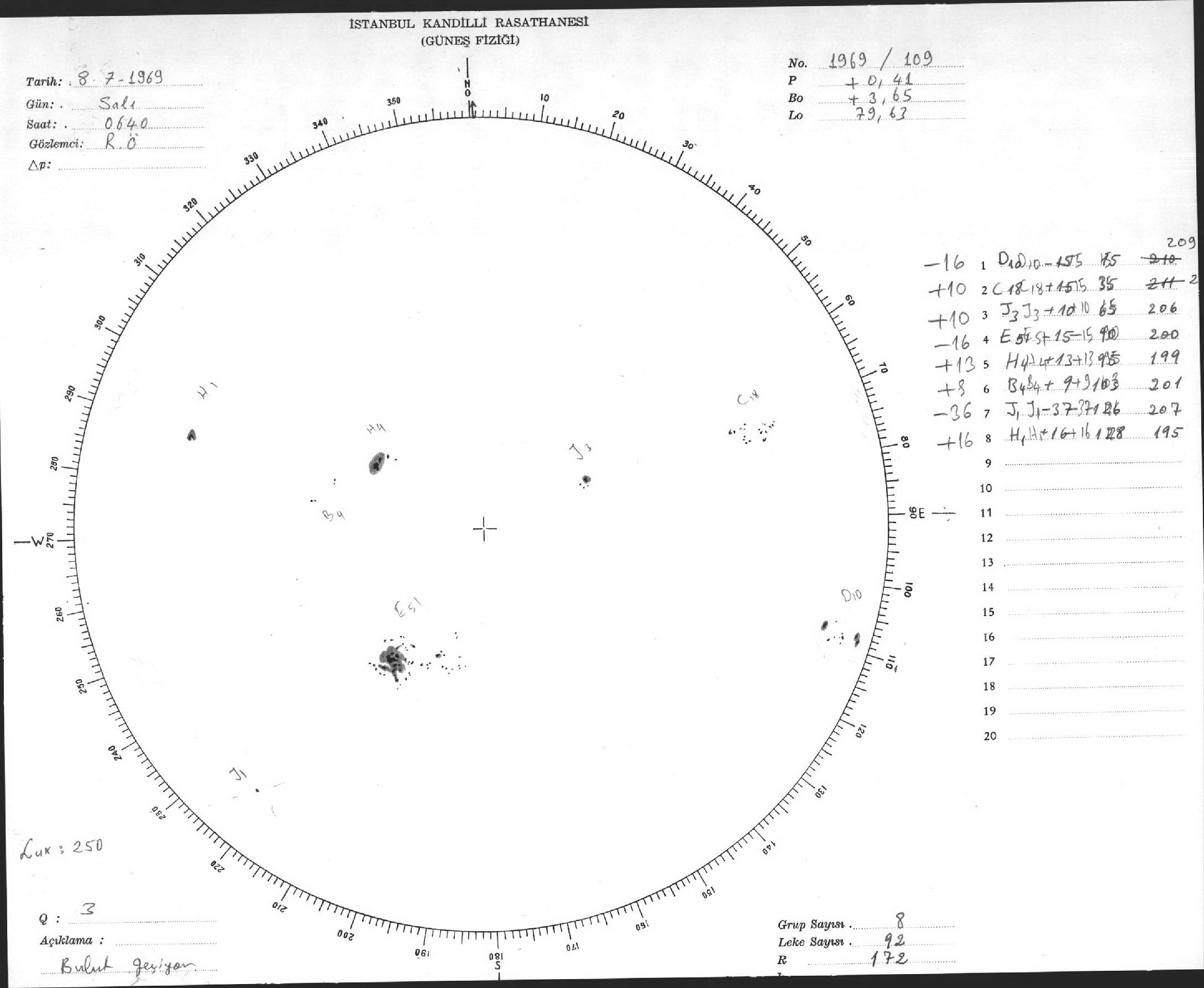 Güneş Lekesi Çizimi - 08.07.1969