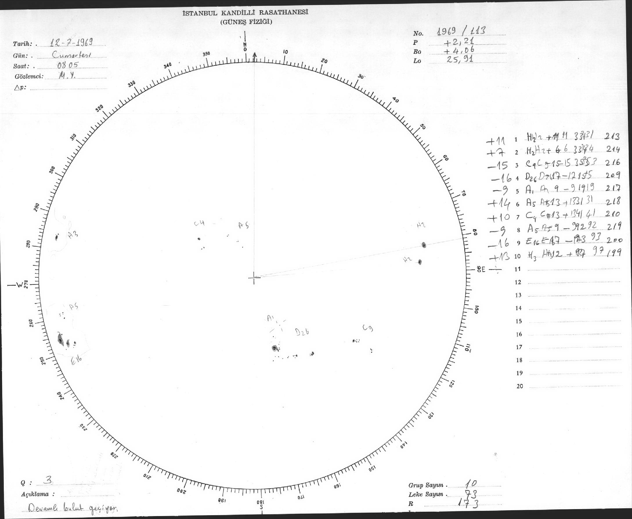 Güneş Lekesi Çizimi - 12.07.1969