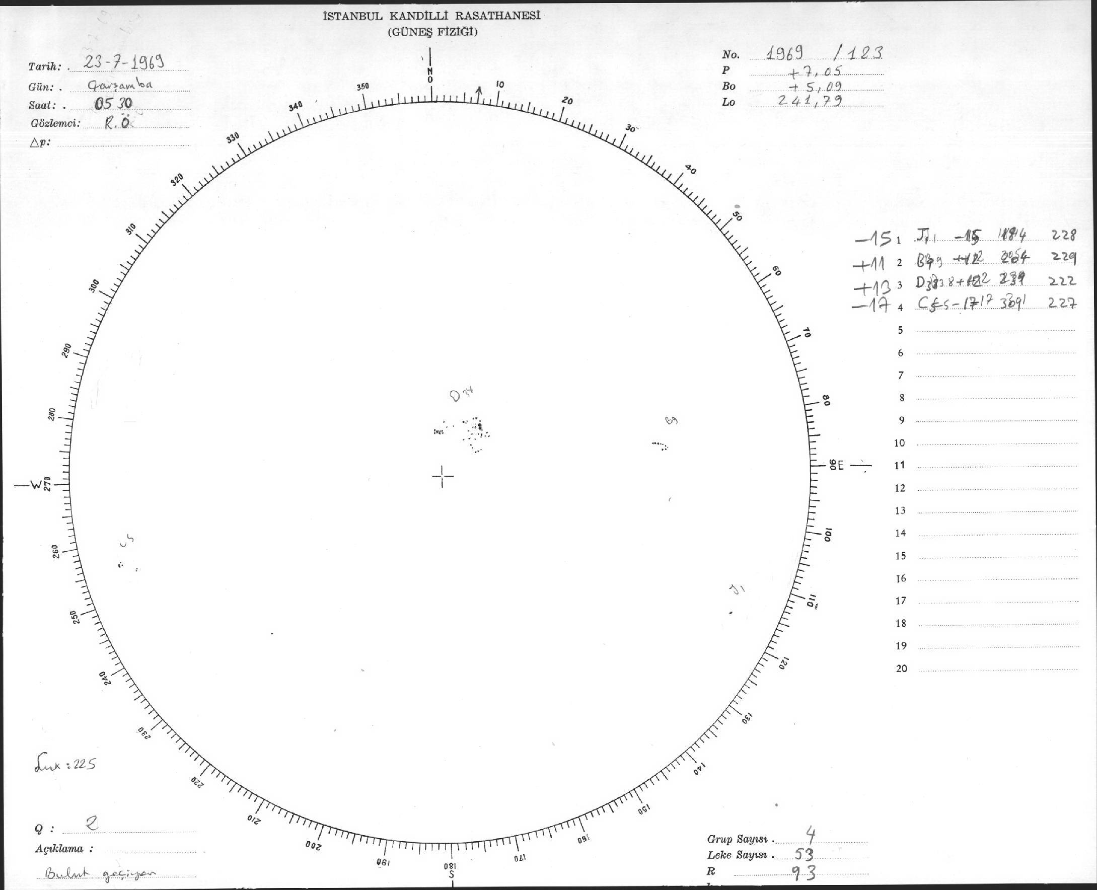 Güneş Lekesi Çizimi - 23.07.1969
