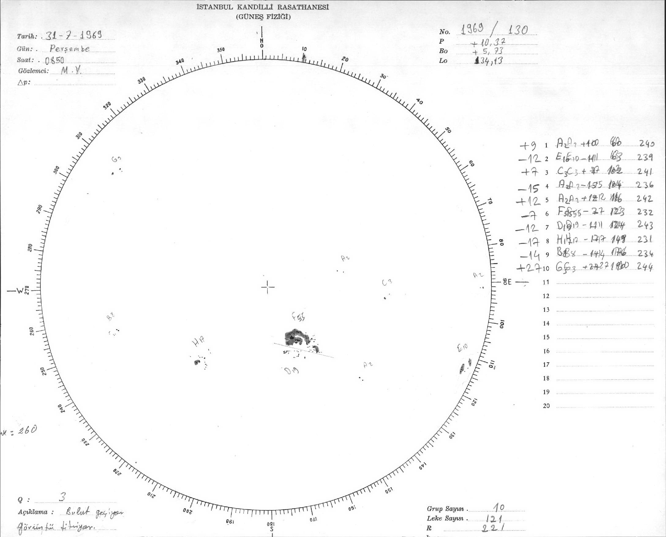 Güneş Lekesi Çizimi - 31.07.1969