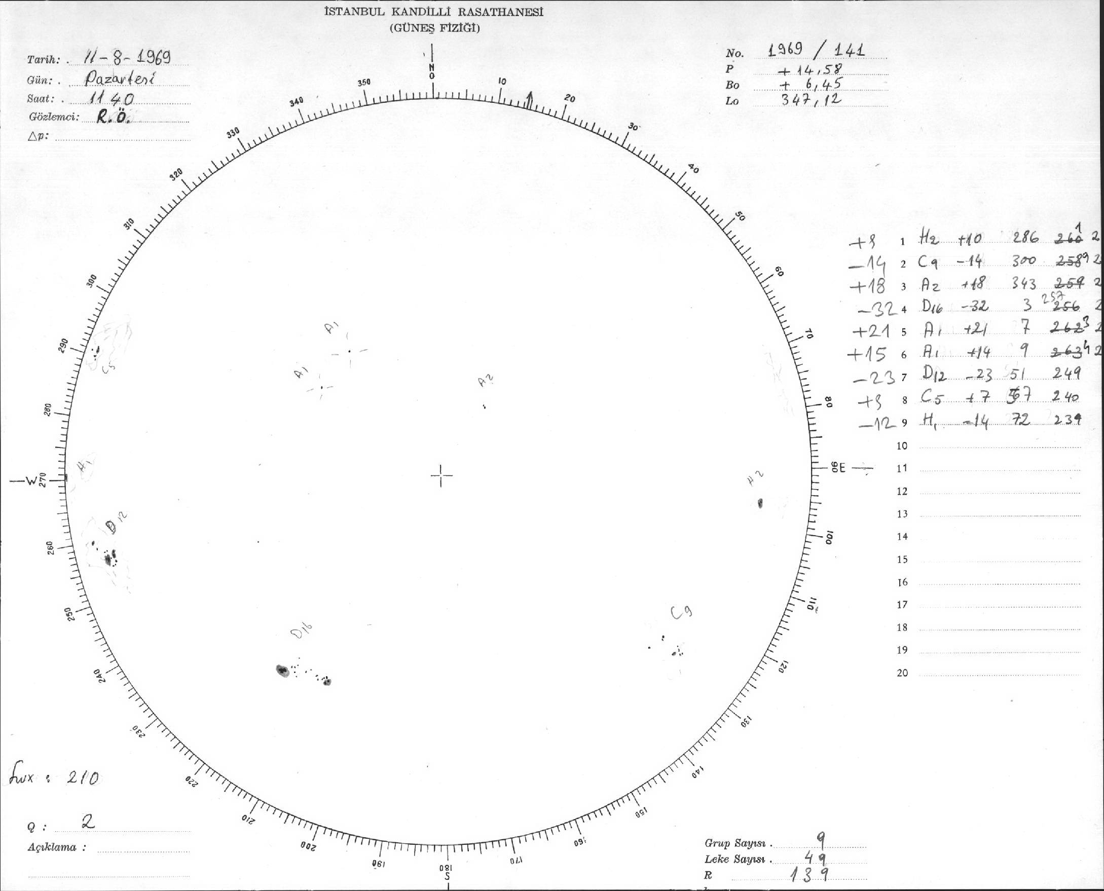 Güneş Lekesi Çizimi - 11.08.1969