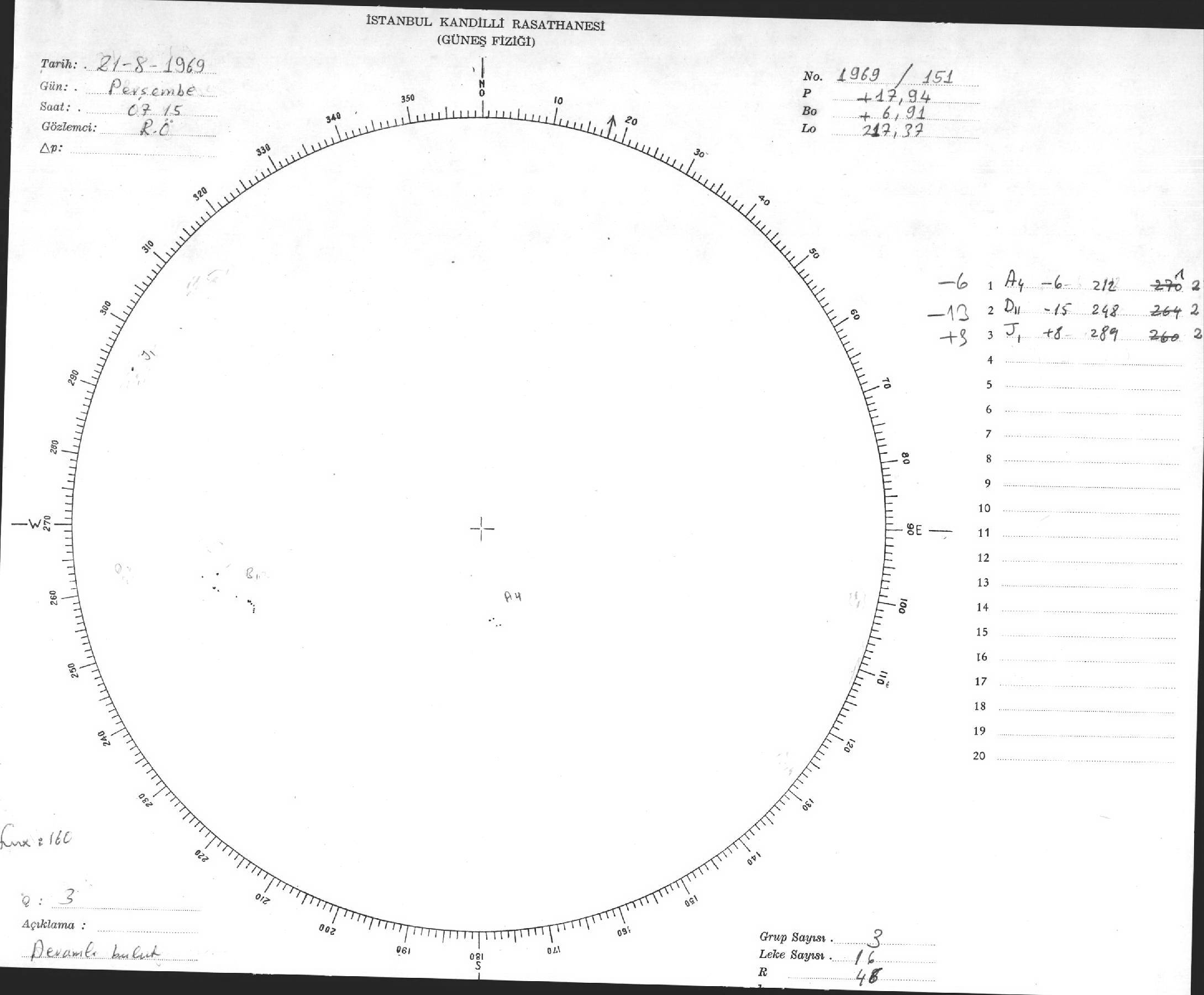 Güneş Lekesi Çizimi - 21.08.1969