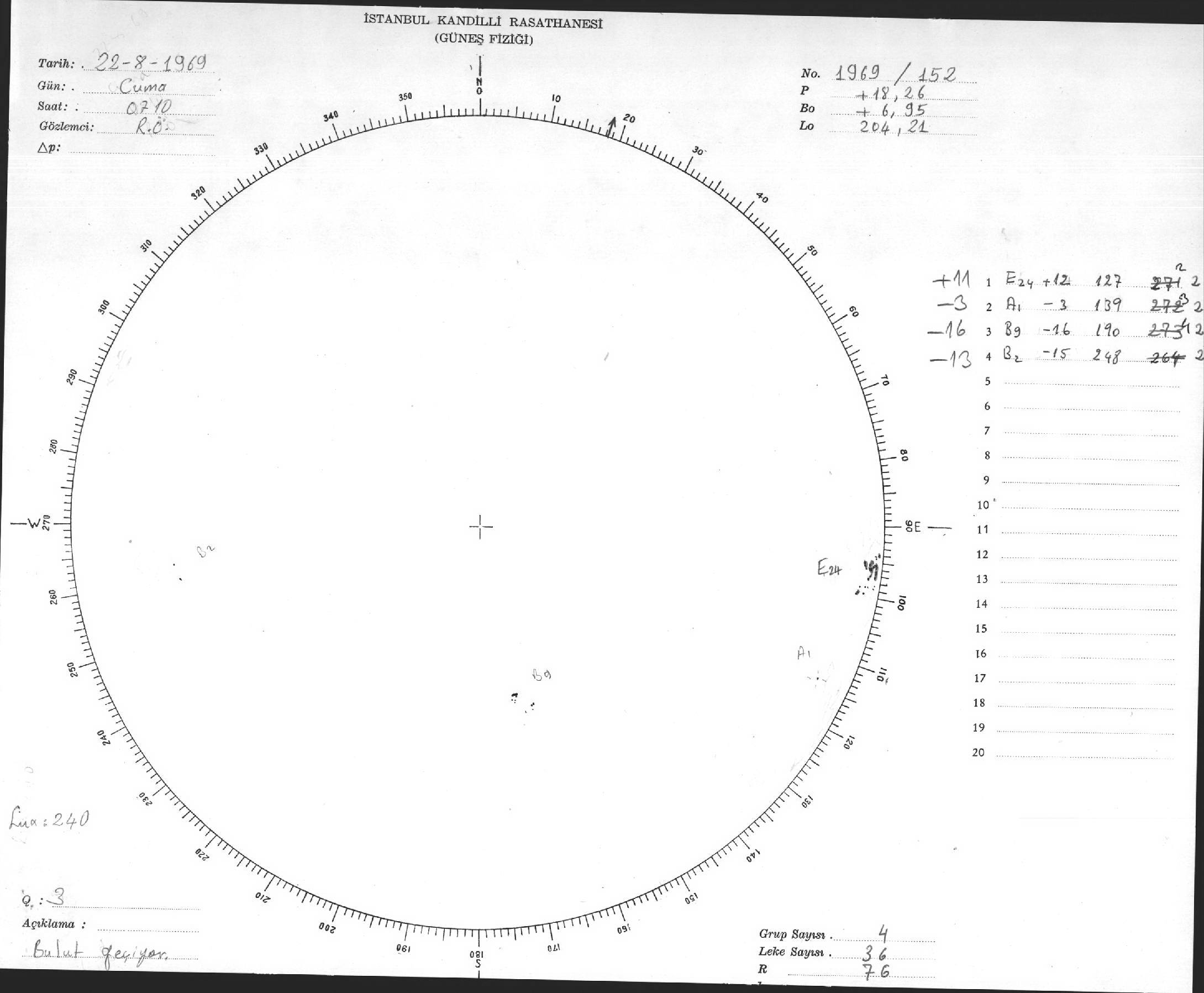Güneş Lekesi Çizimi - 22.08.1969