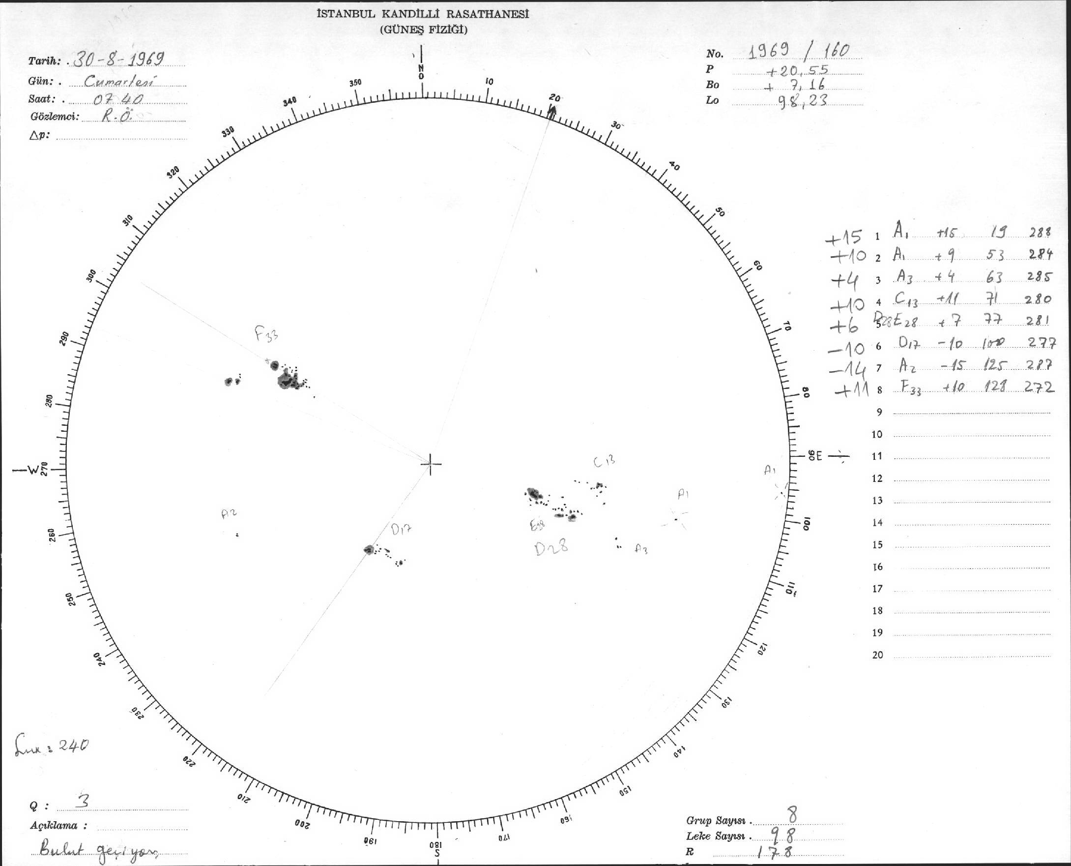 Güneş Lekesi Çizimi - 30.08.1969