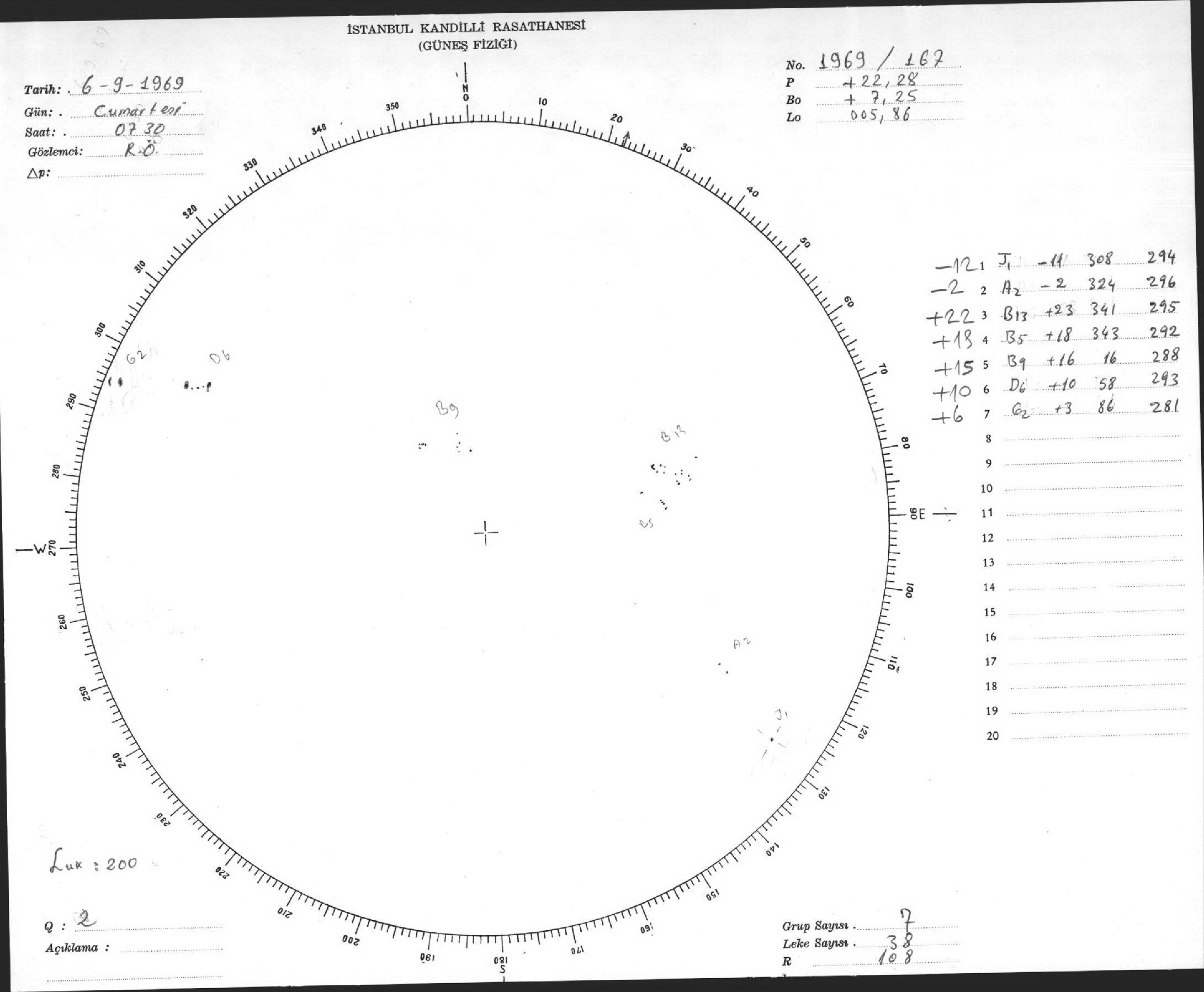 Güneş Lekesi Çizimi - 06.09.1969