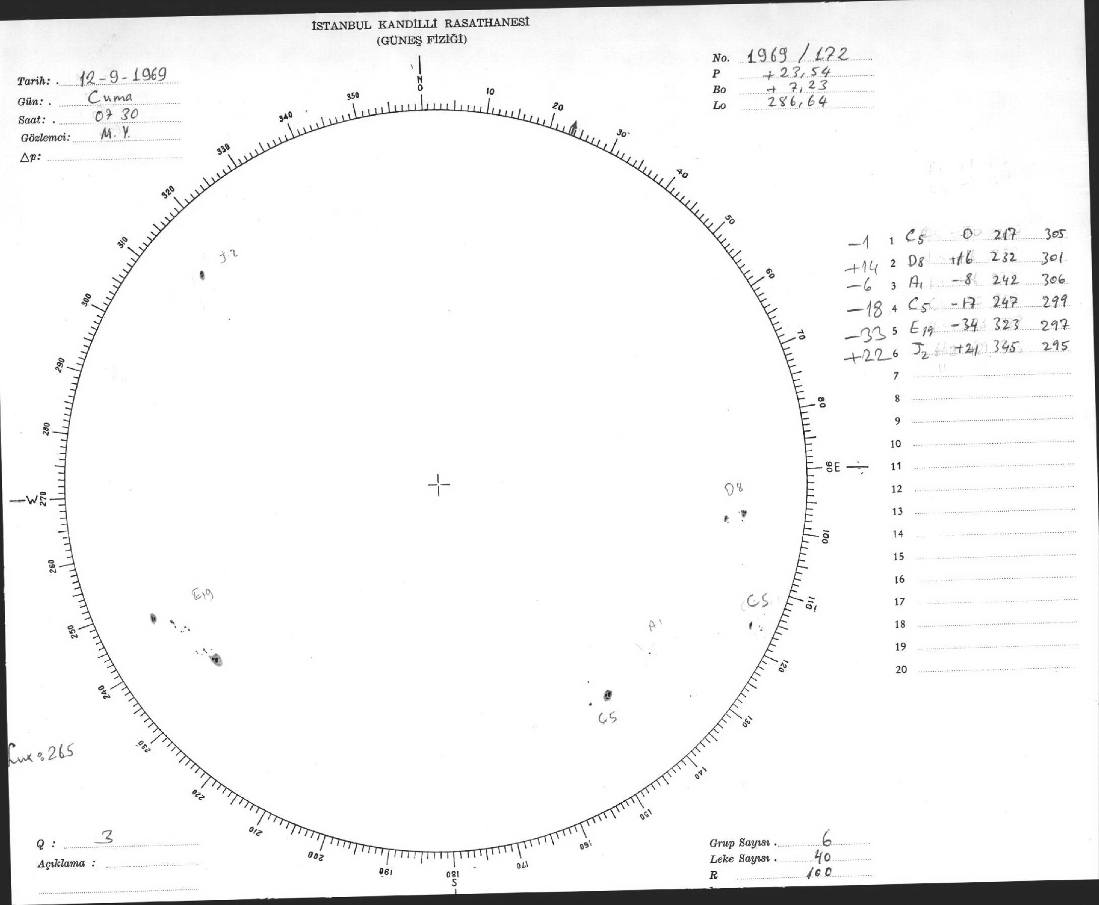 Güneş Lekesi Çizimi - 12.09.1969