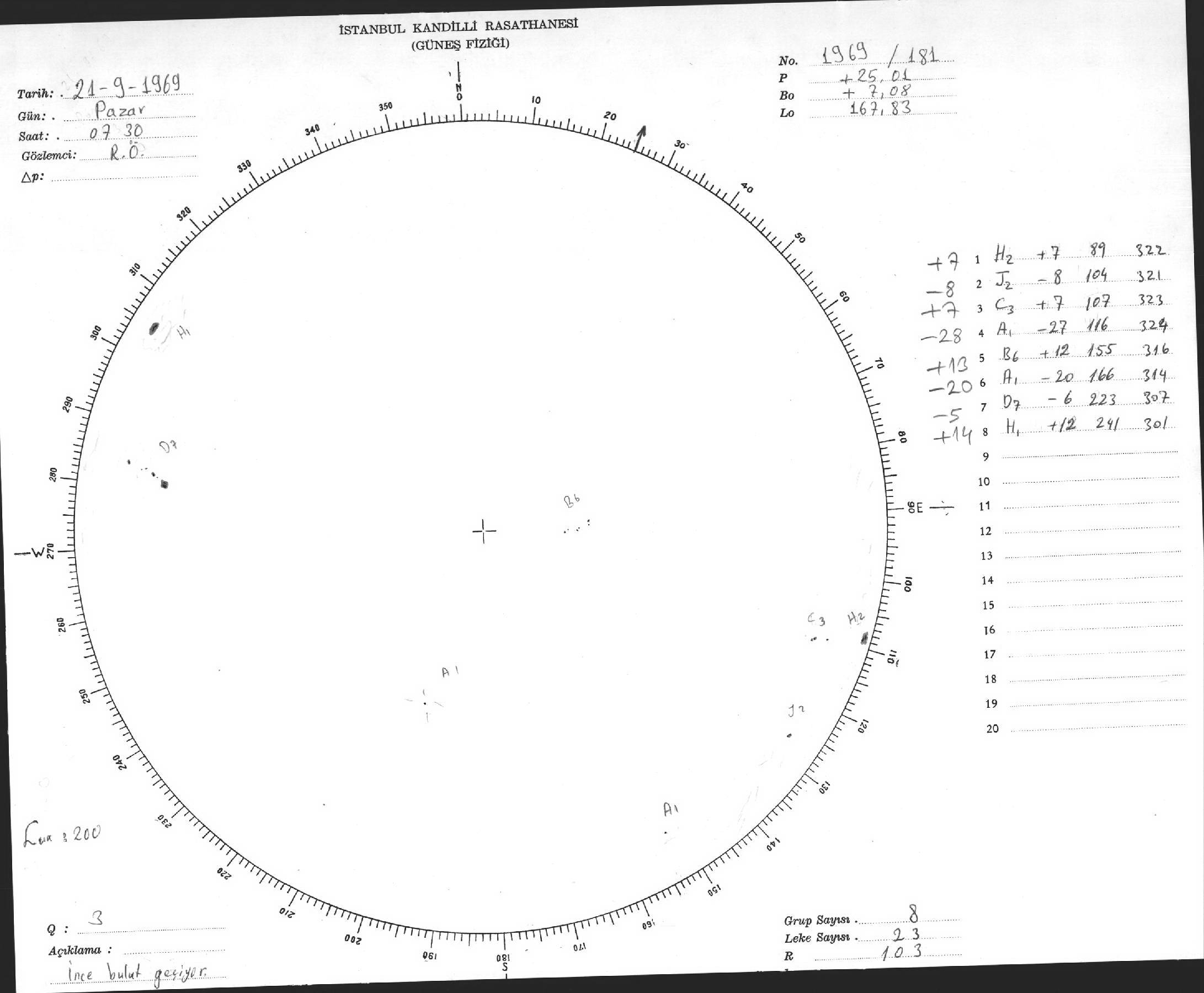 Güneş Lekesi Çizimi - 21.09.1969