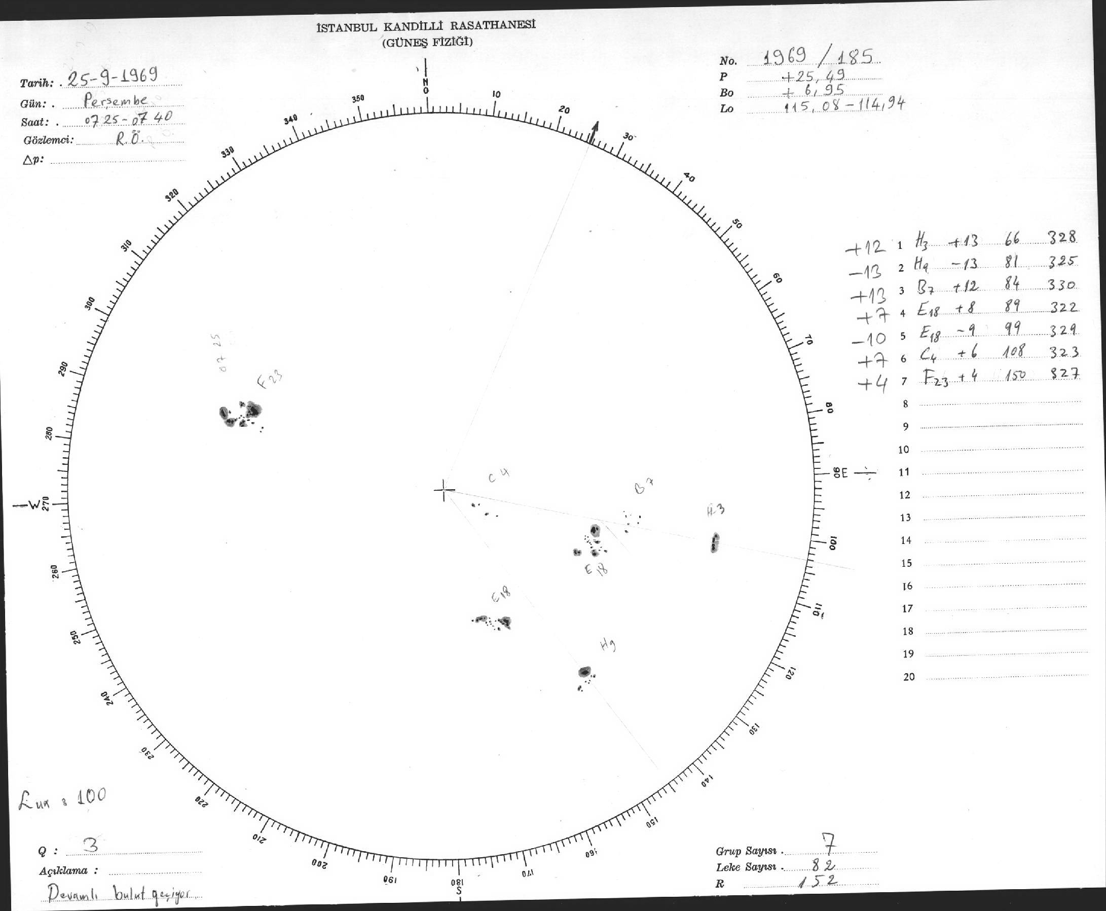 Güneş Lekesi Çizimi - 25.09.1969