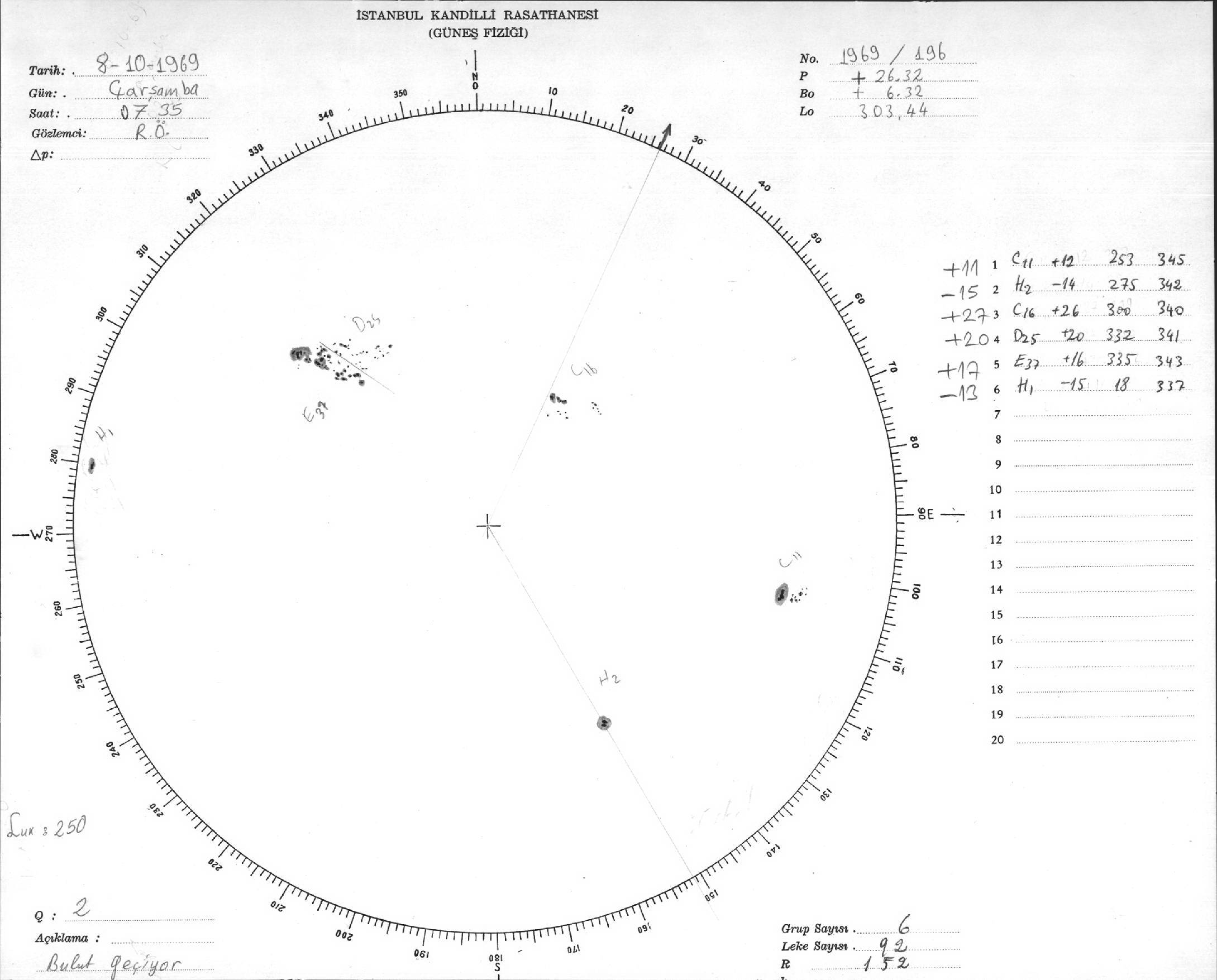 Güneş Lekesi Çizimi - 08.10.1969