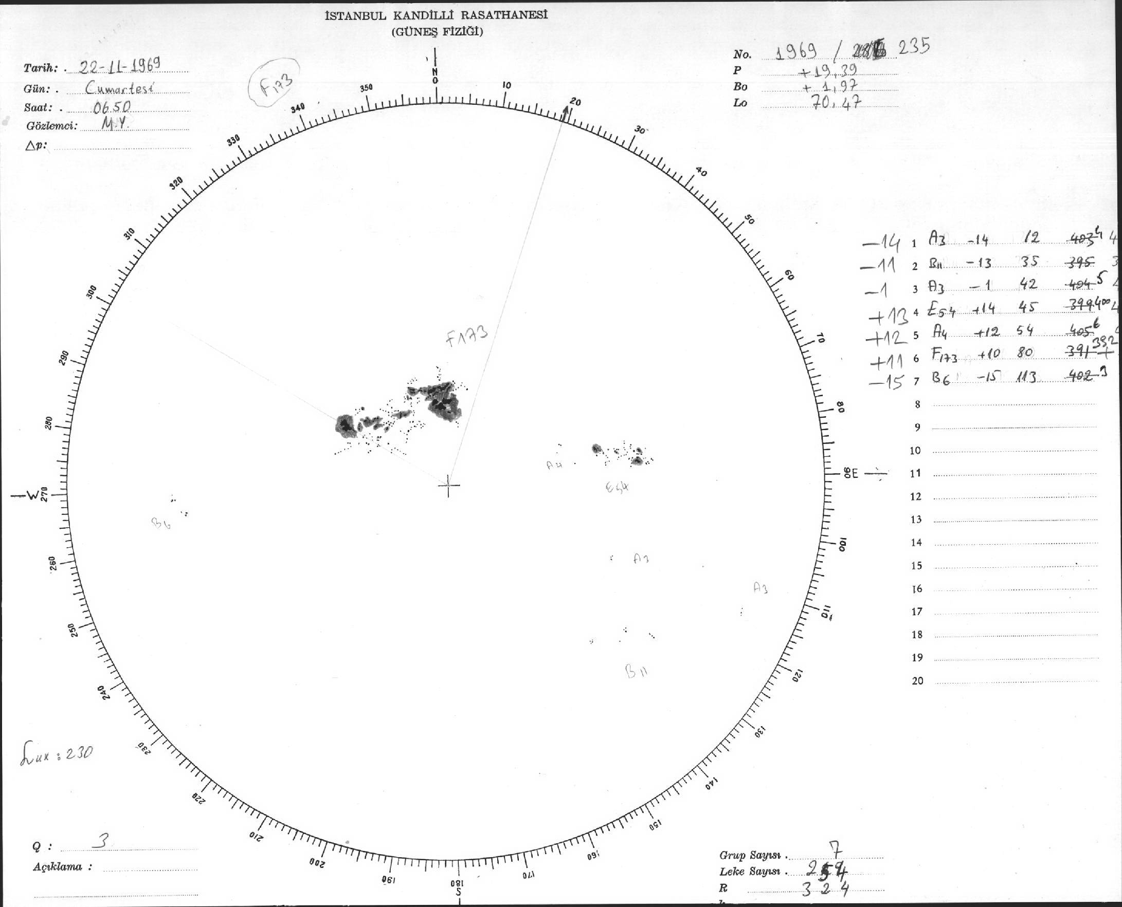 Güneş Lekesi Çizimi - 22.11.1969