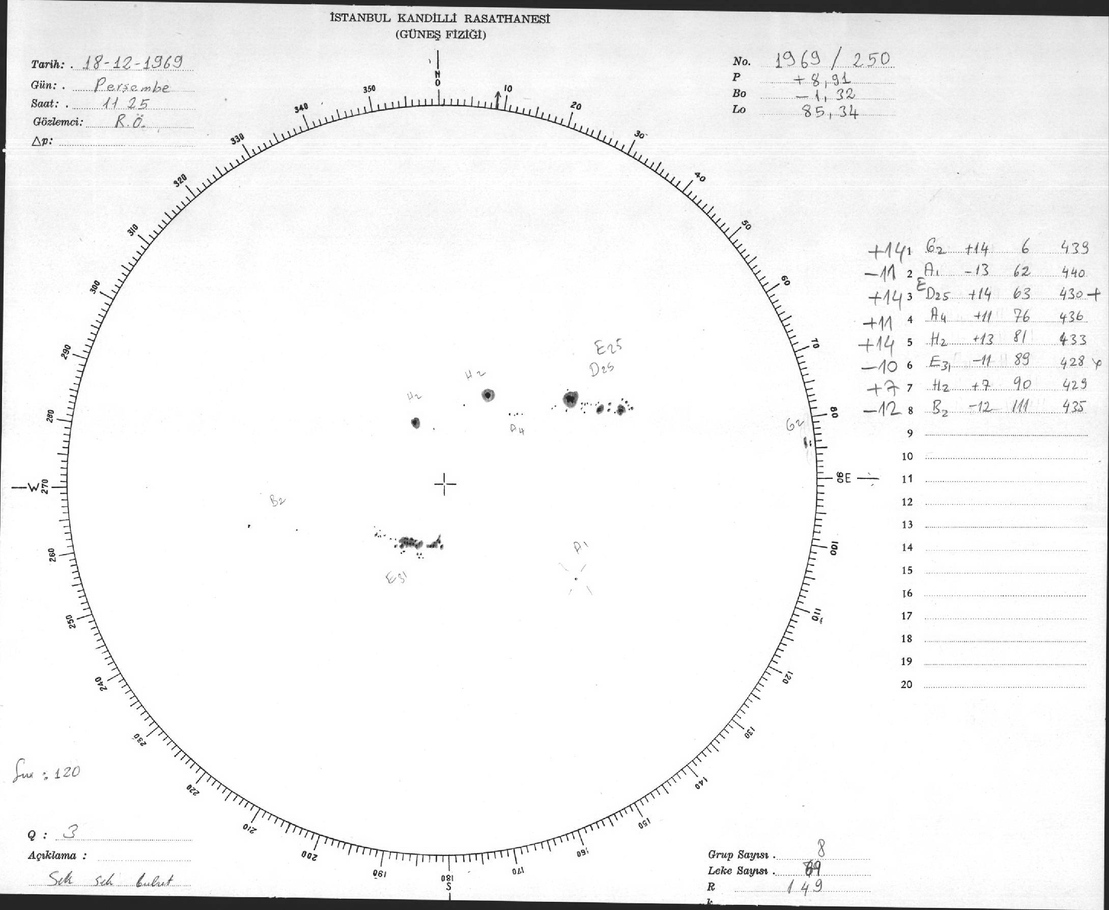 Güneş Lekesi Çizimi - 18.12.1969