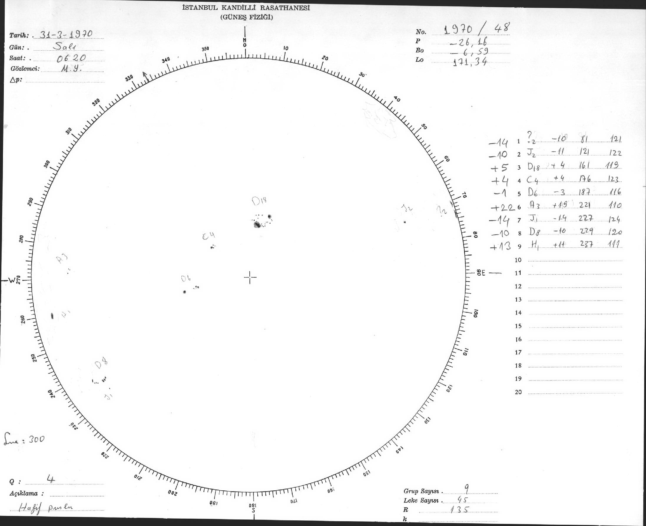 Güneş Lekesi Çizimi - 31.03.1970