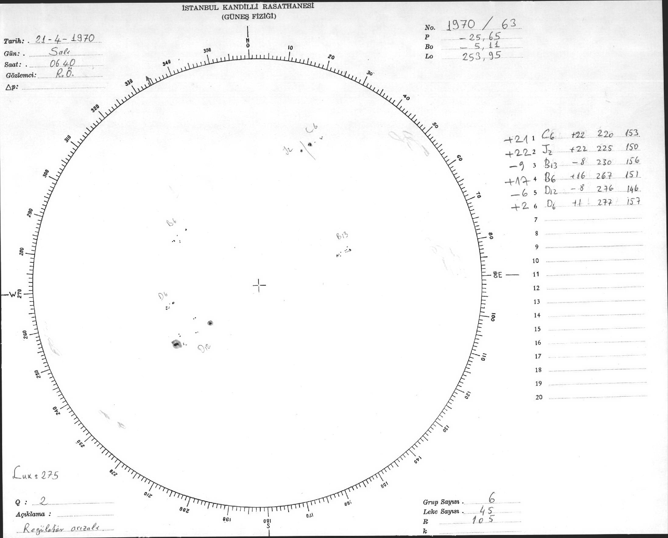 Güneş Lekesi Çizimi - 21.04.1970