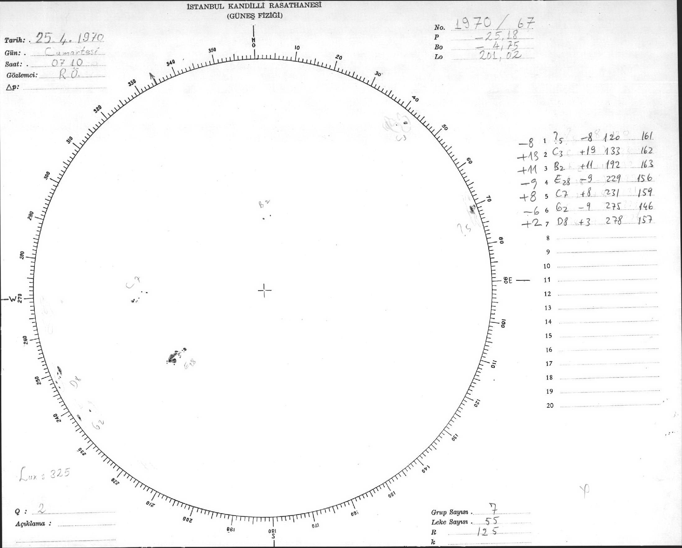 Güneş Lekesi Çizimi - 25.04.1970