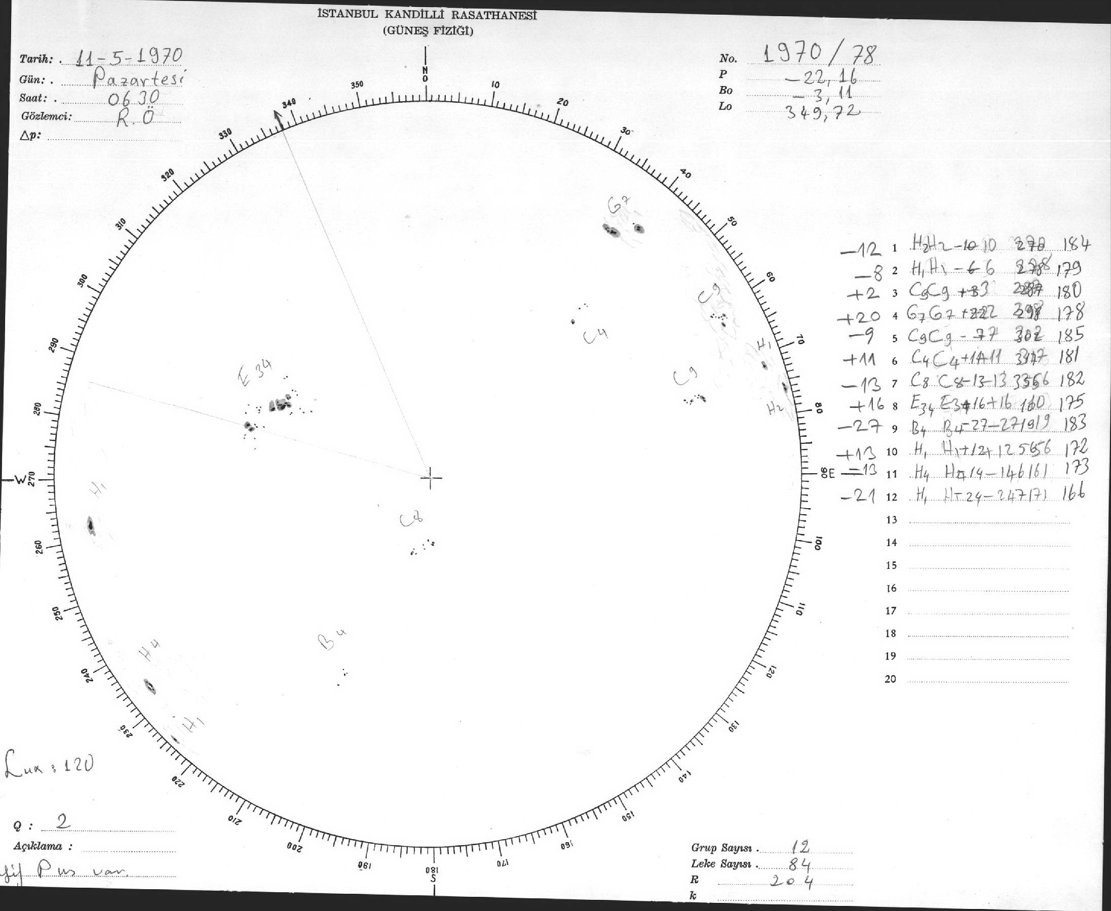 Güneş Lekesi Çizimi - 11.05.1970