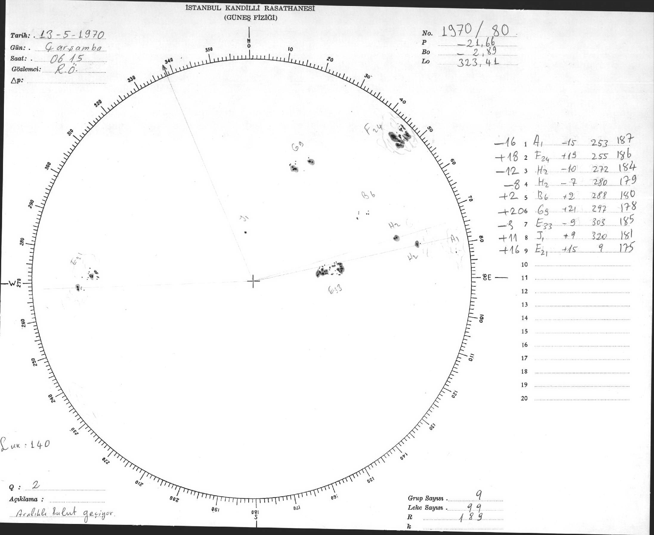 Güneş Lekesi Çizimi - 13.05.1970