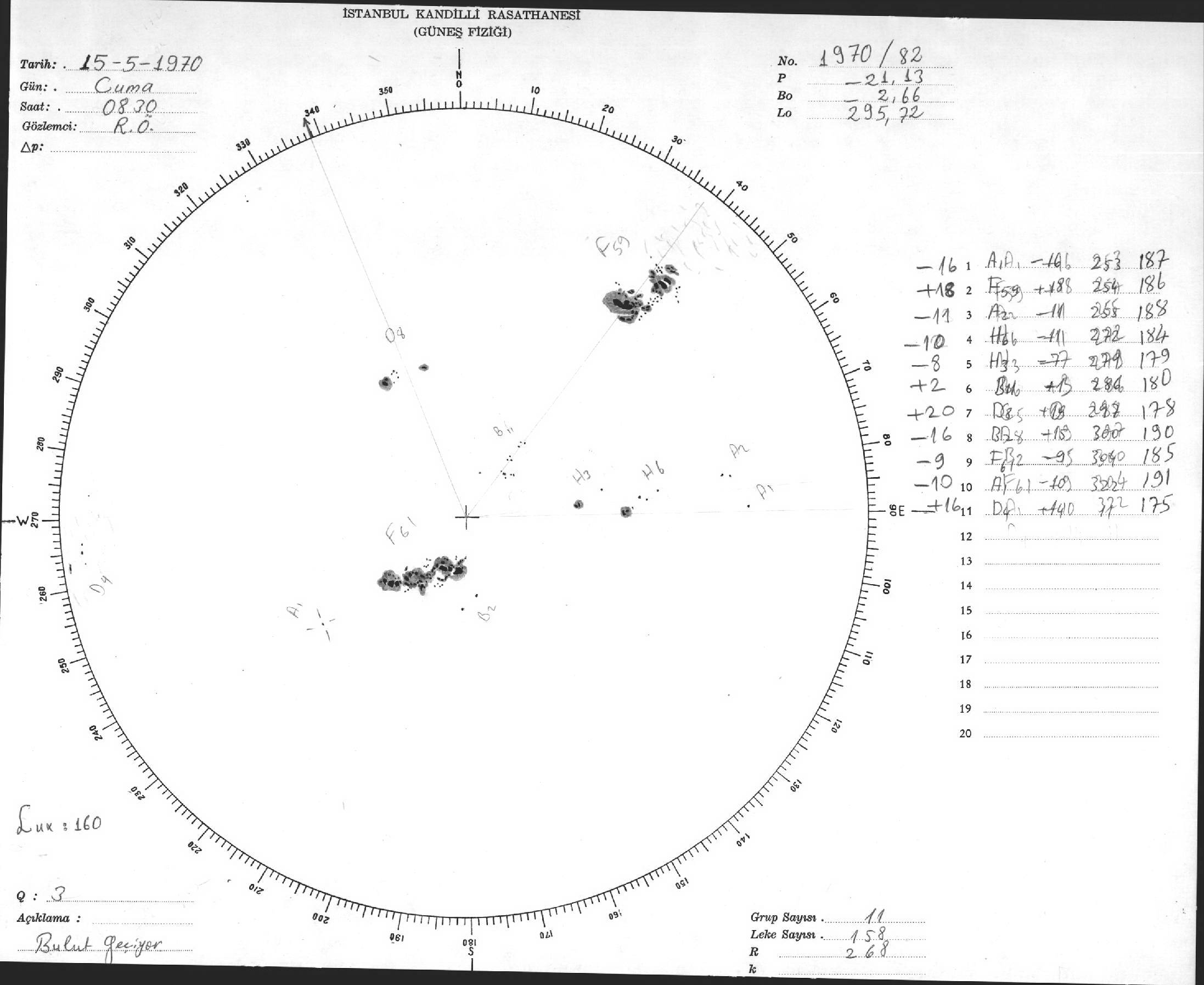 Güneş Lekesi Çizimi - 15.05.1970