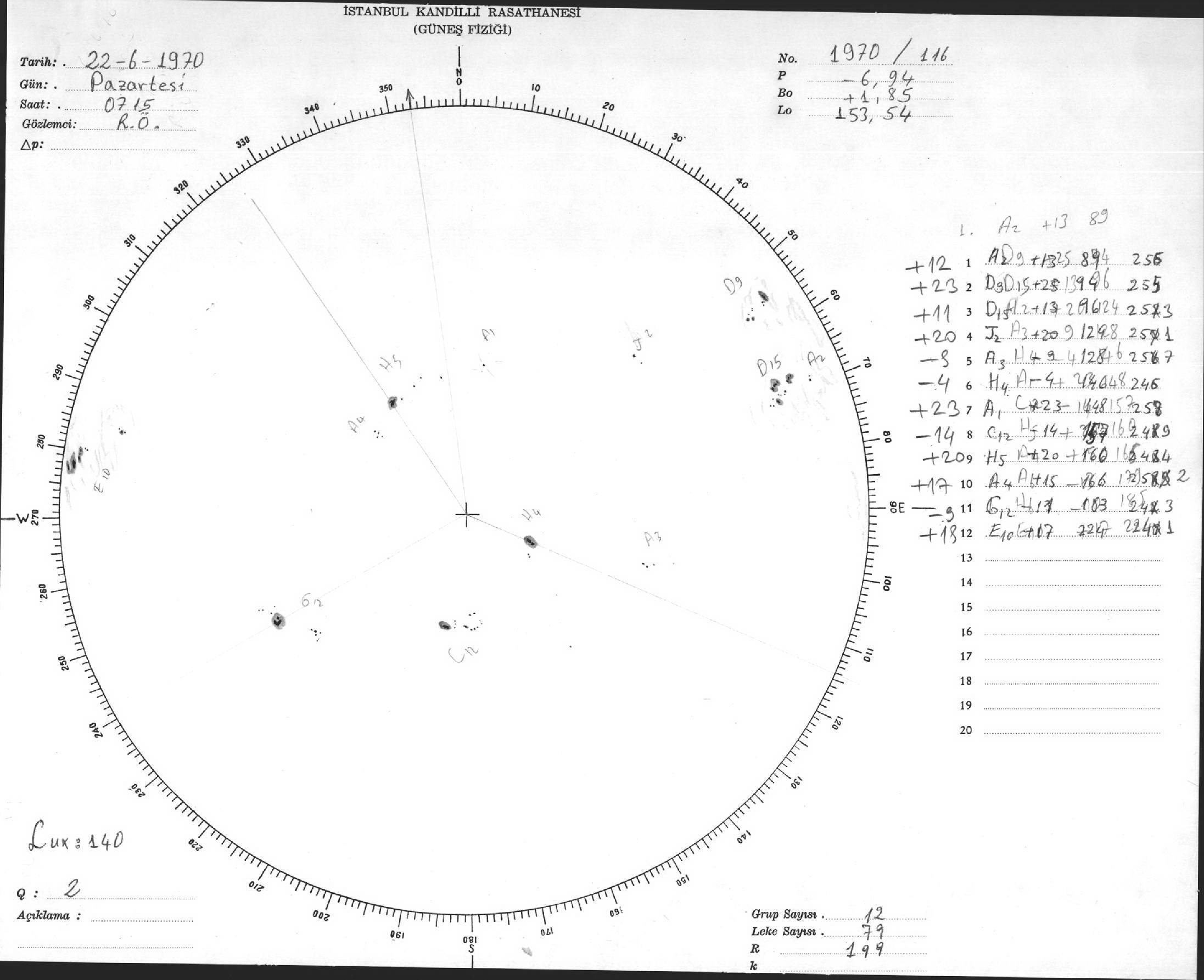 Güneş Lekesi Çizimi - 22.06.1970