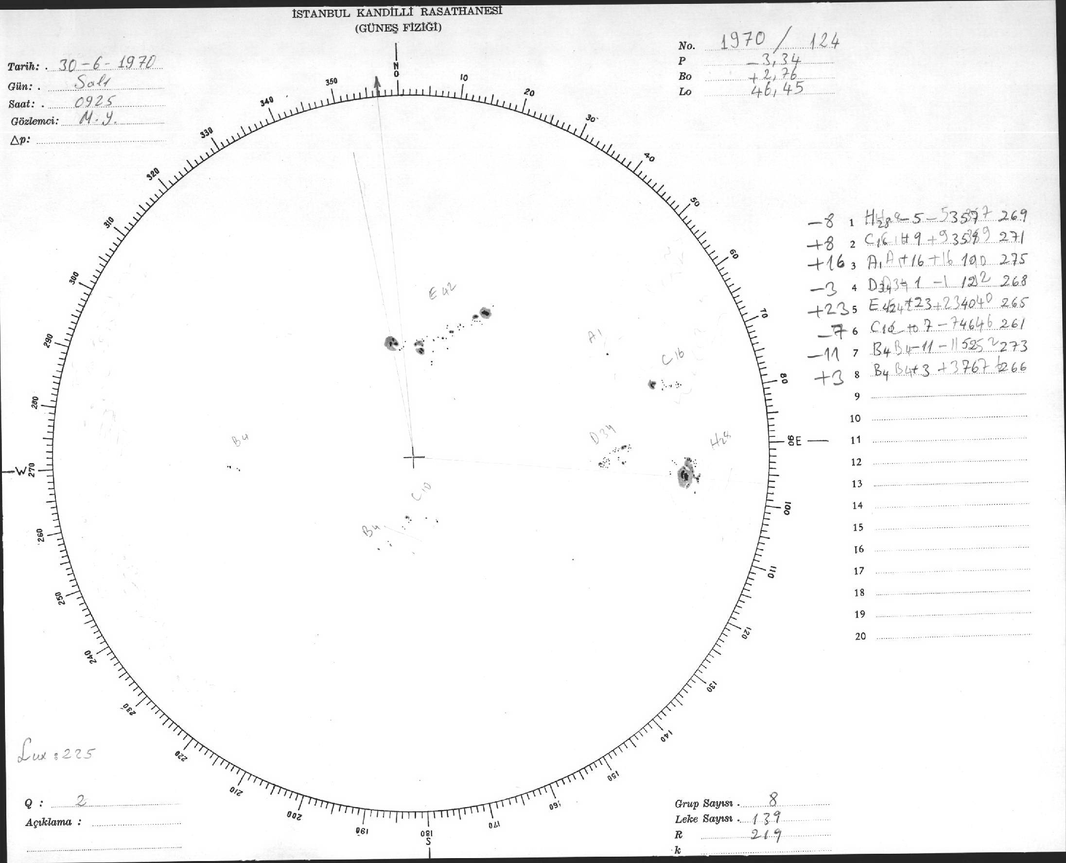 Güneş Lekesi Çizimi - 30.06.1970