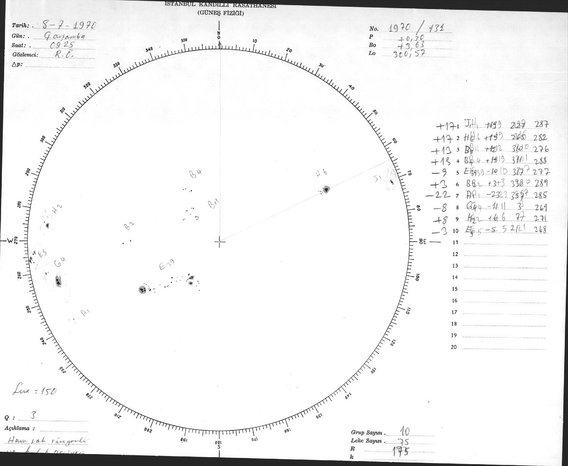 Güneş Lekesi Çizimi - 08.07.1970