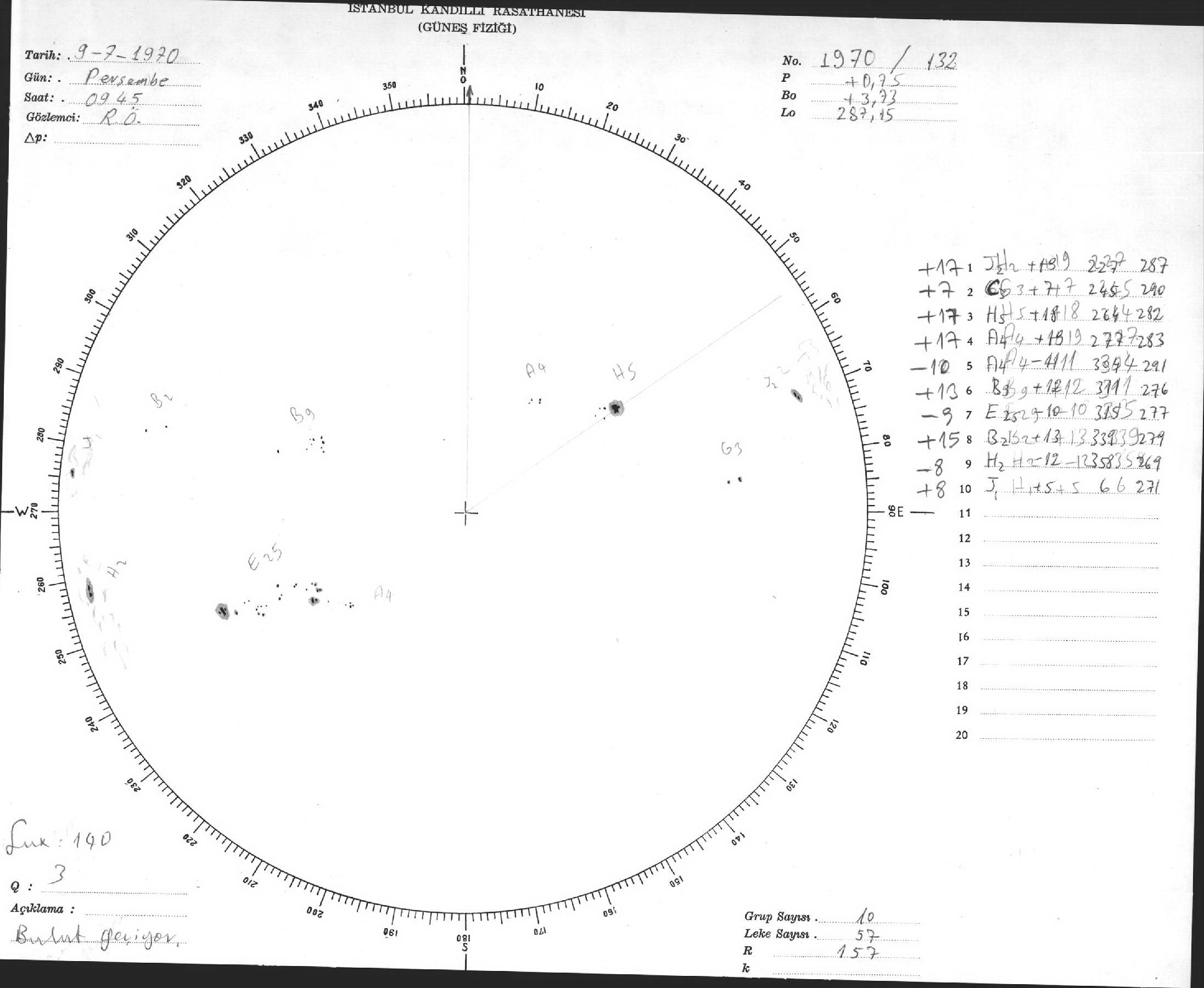 Güneş Lekesi Çizimi - 09.07.1970