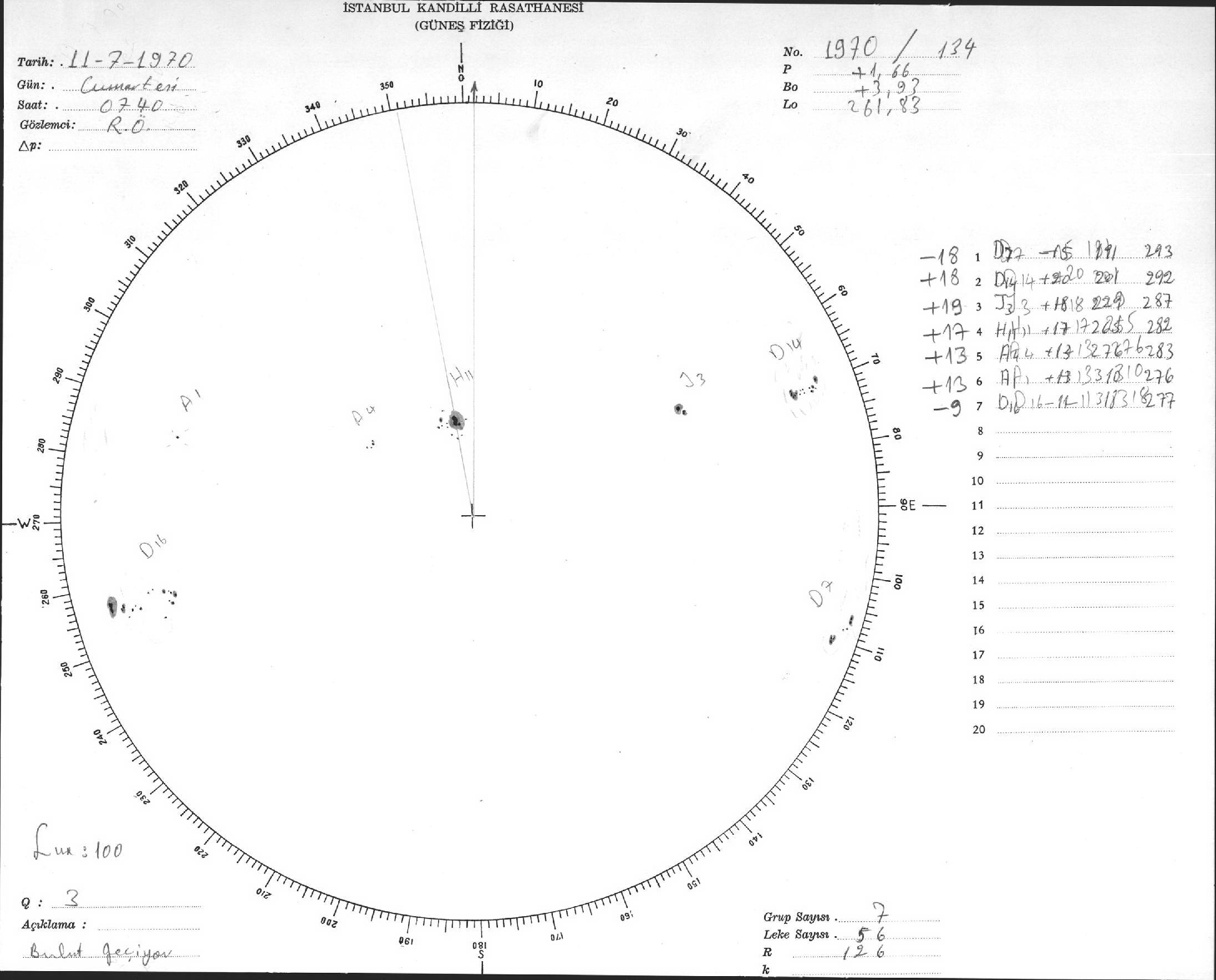 Güneş Lekesi Çizimi - 11.07.1970