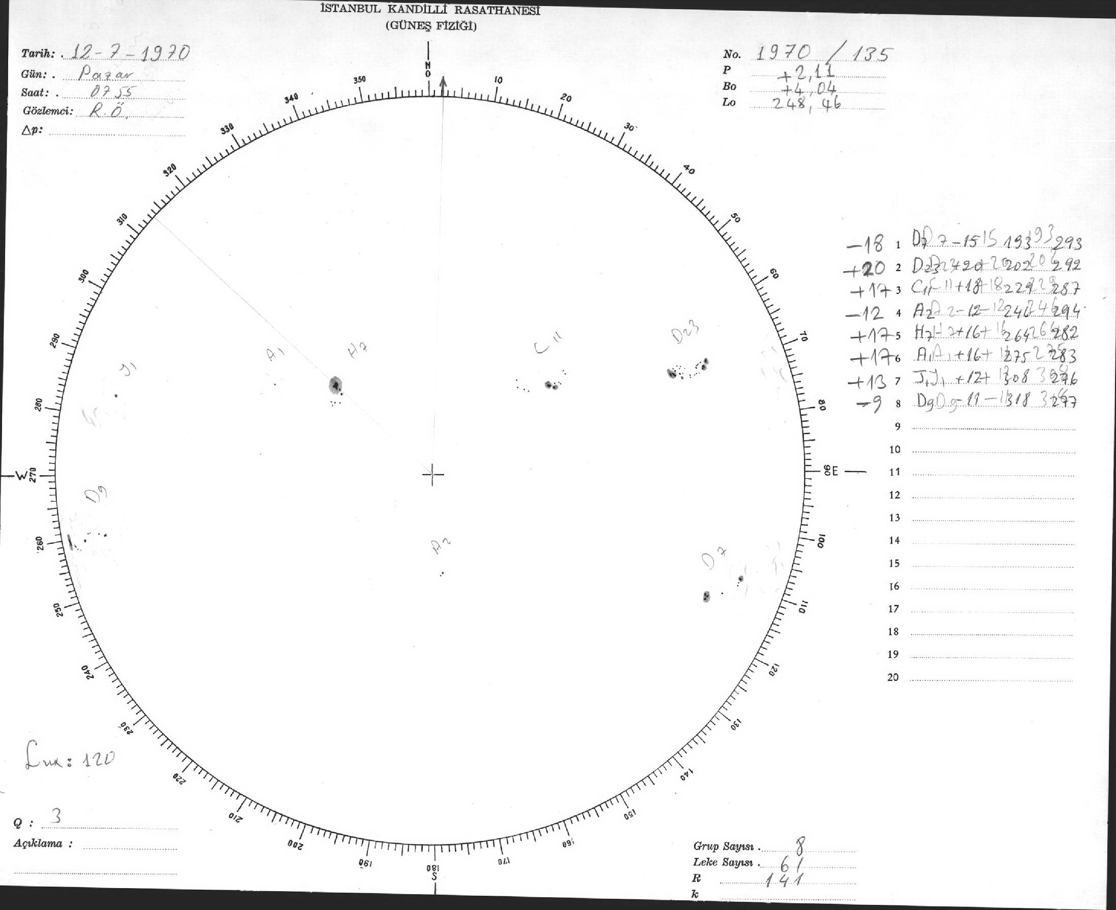 Güneş Lekesi Çizimi - 12.07.1970