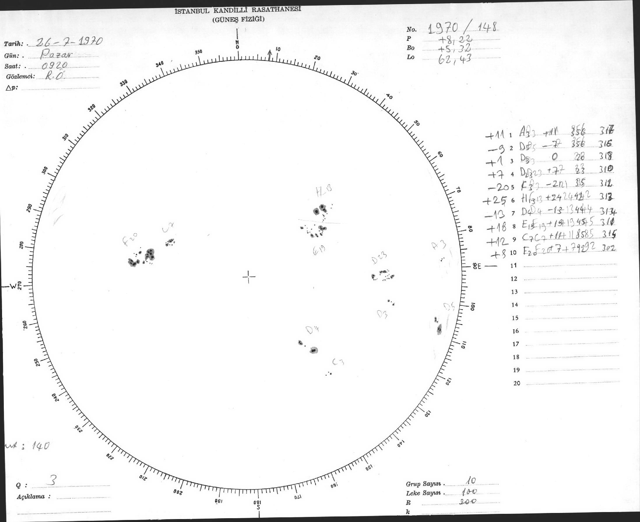 Güneş Lekesi Çizimi - 26.07.1970