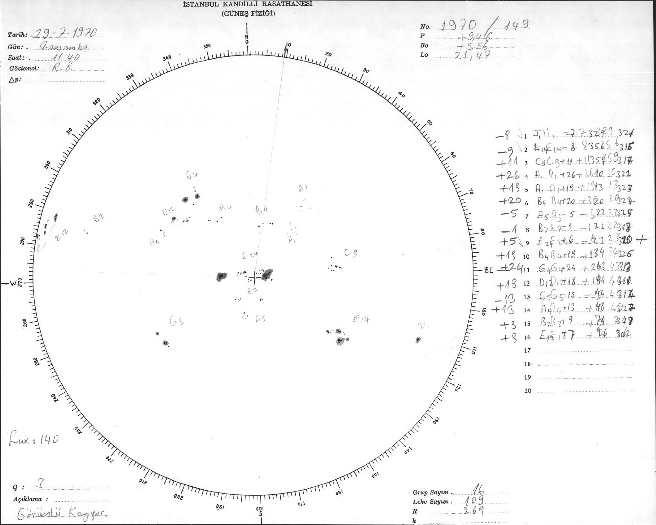 Güneş Lekesi Çizimi - 29.07.1970