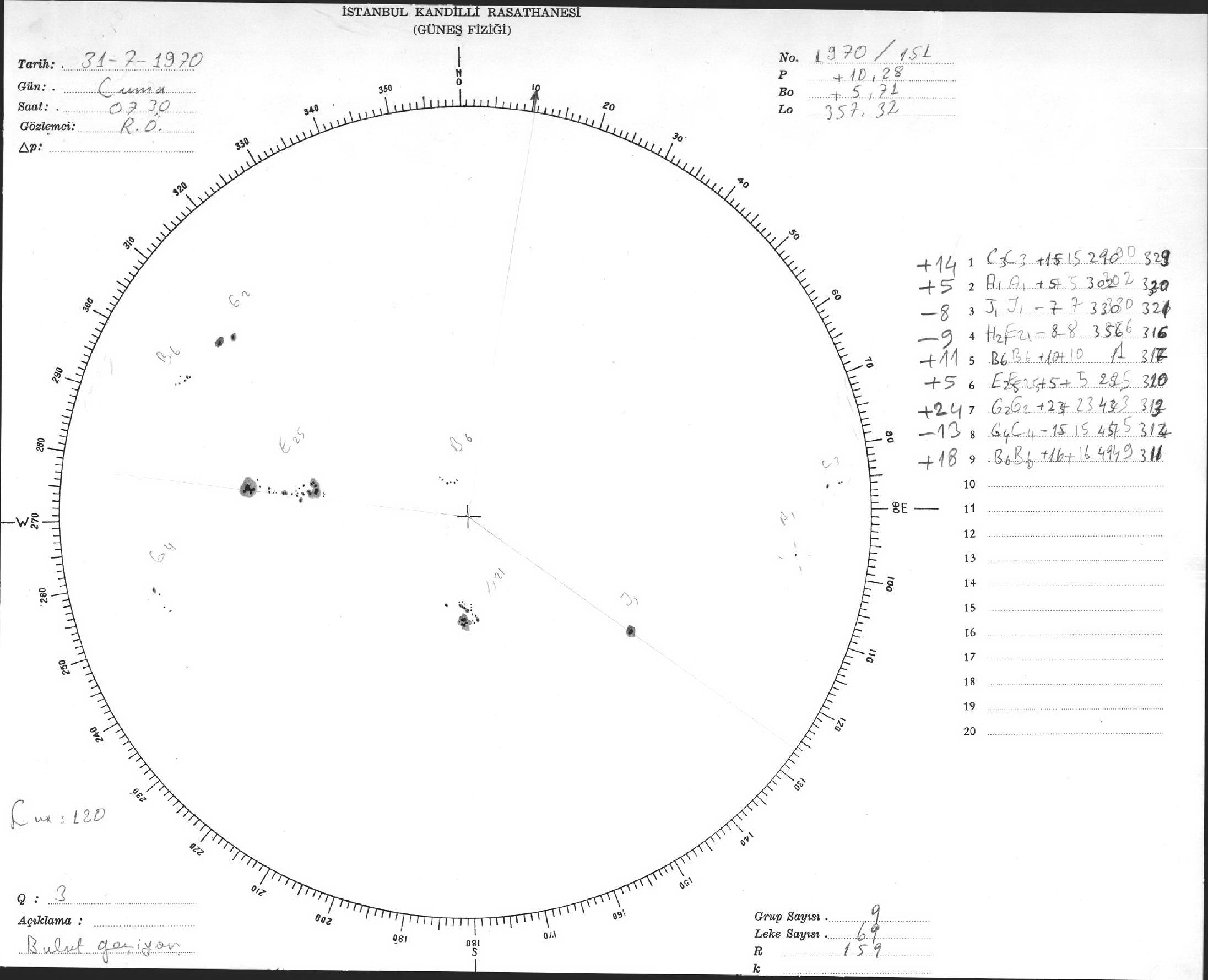 Güneş Lekesi Çizimi - 31.07.1970