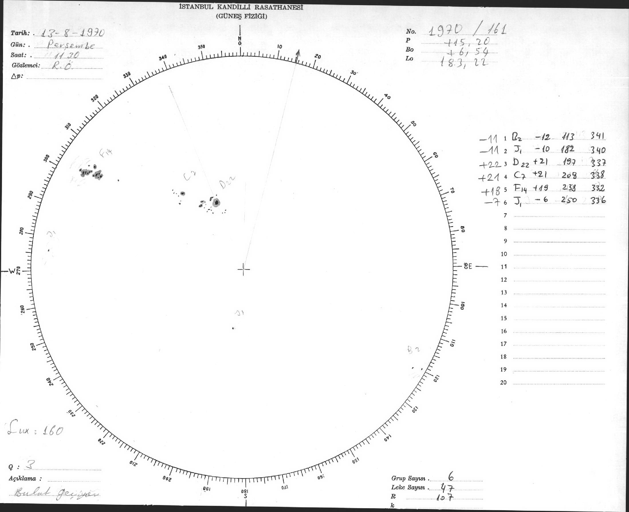 Güneş Lekesi Çizimi - 13.08.1970