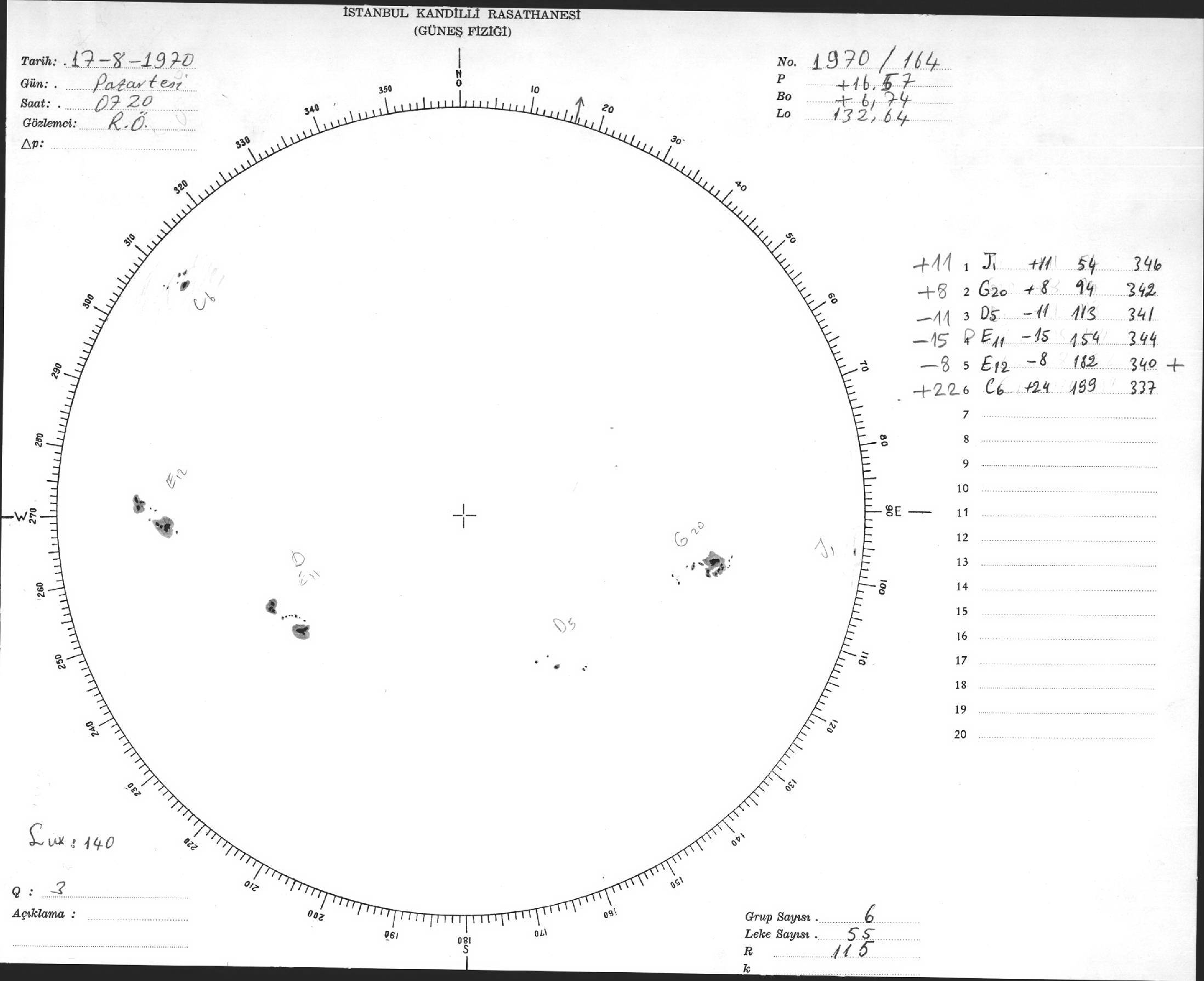 Güneş Lekesi Çizimi - 17.08.1970