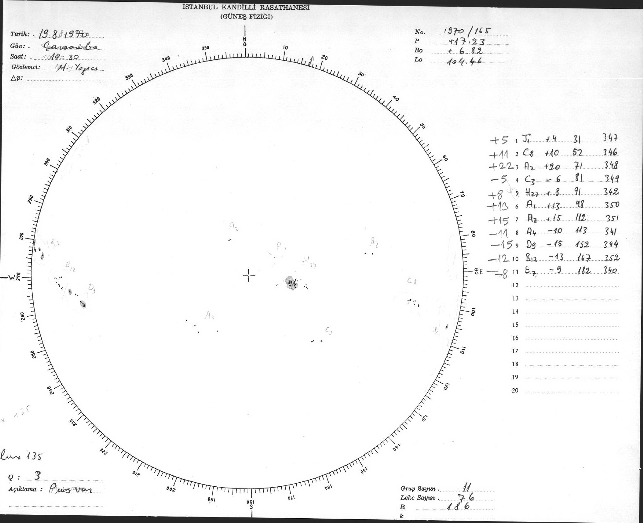 Güneş Lekesi Çizimi - 19.08.1970