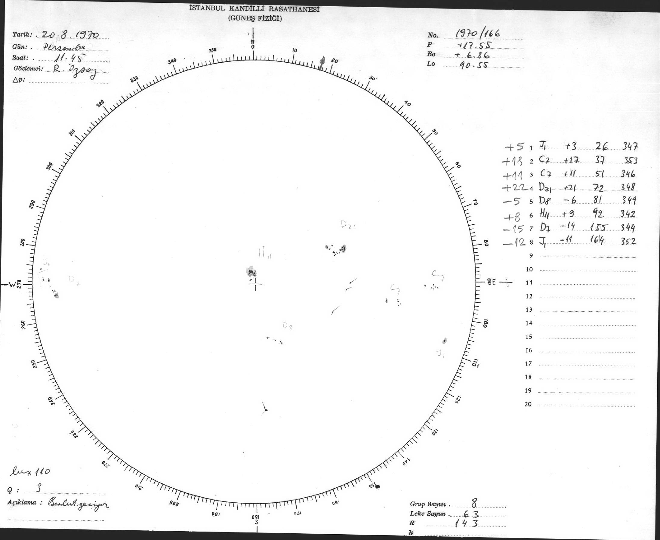 Güneş Lekesi Çizimi - 20.08.1970