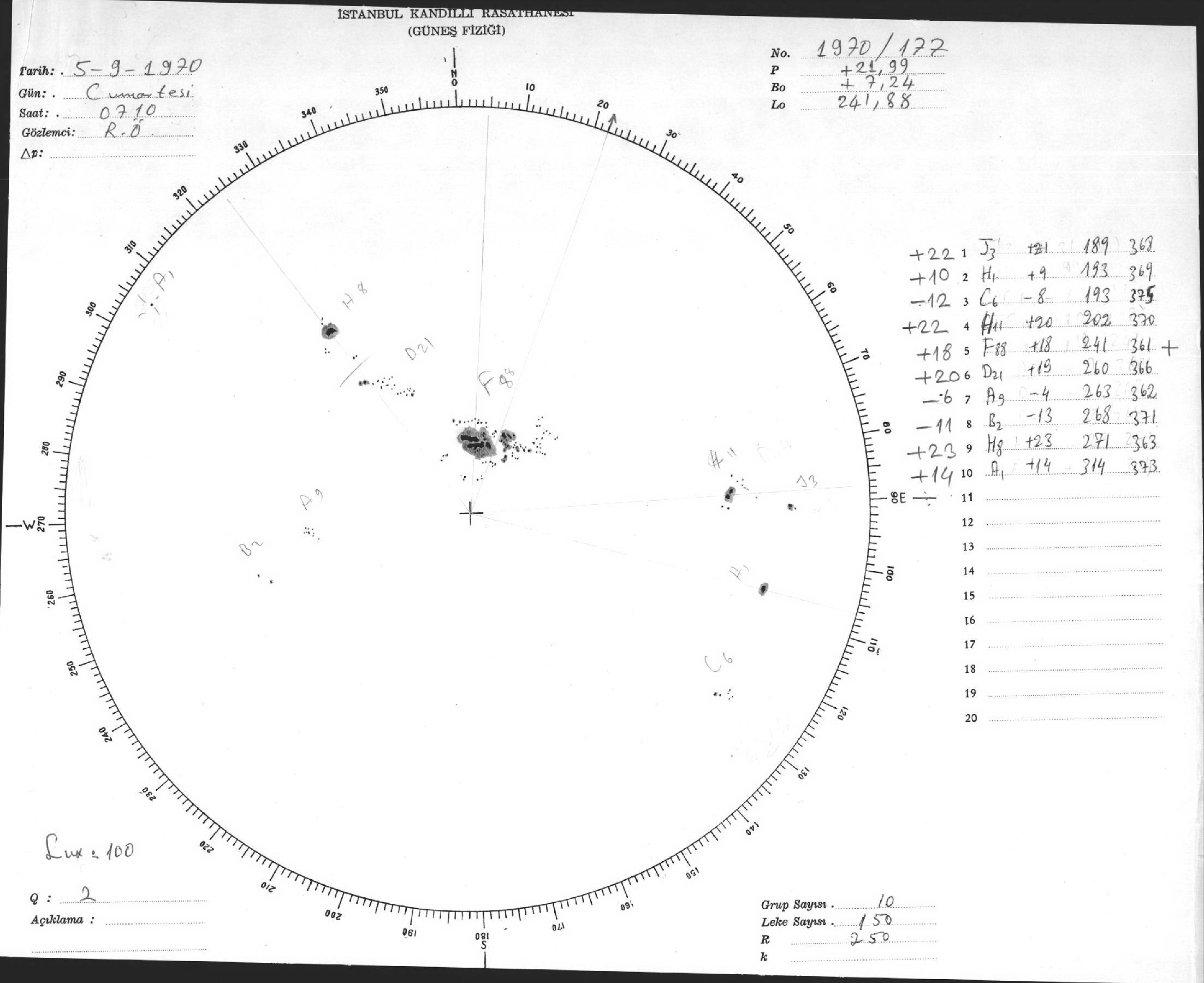 Güneş Lekesi Çizimi - 05.09.1970