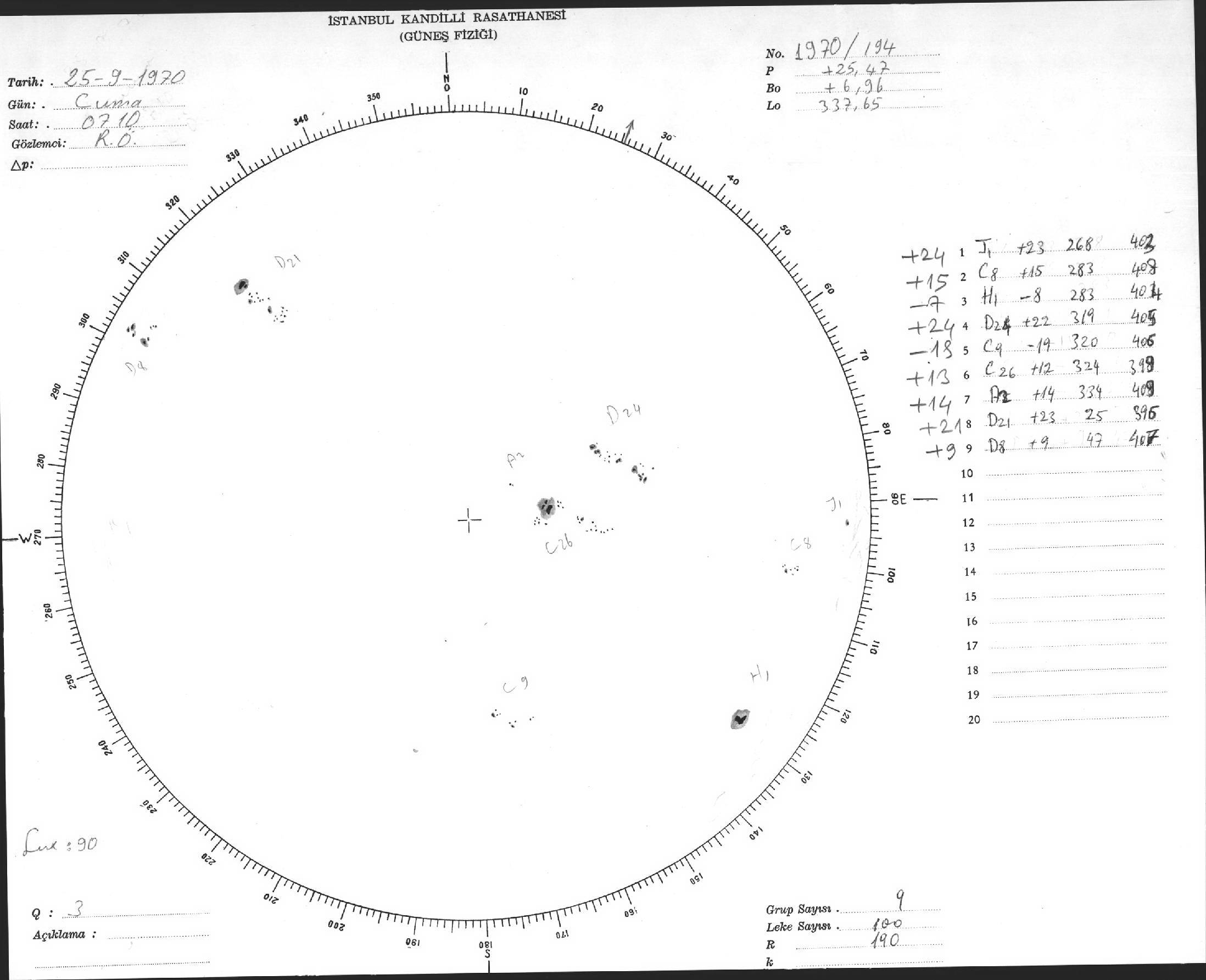 Güneş Lekesi Çizimi - 25.09.1970