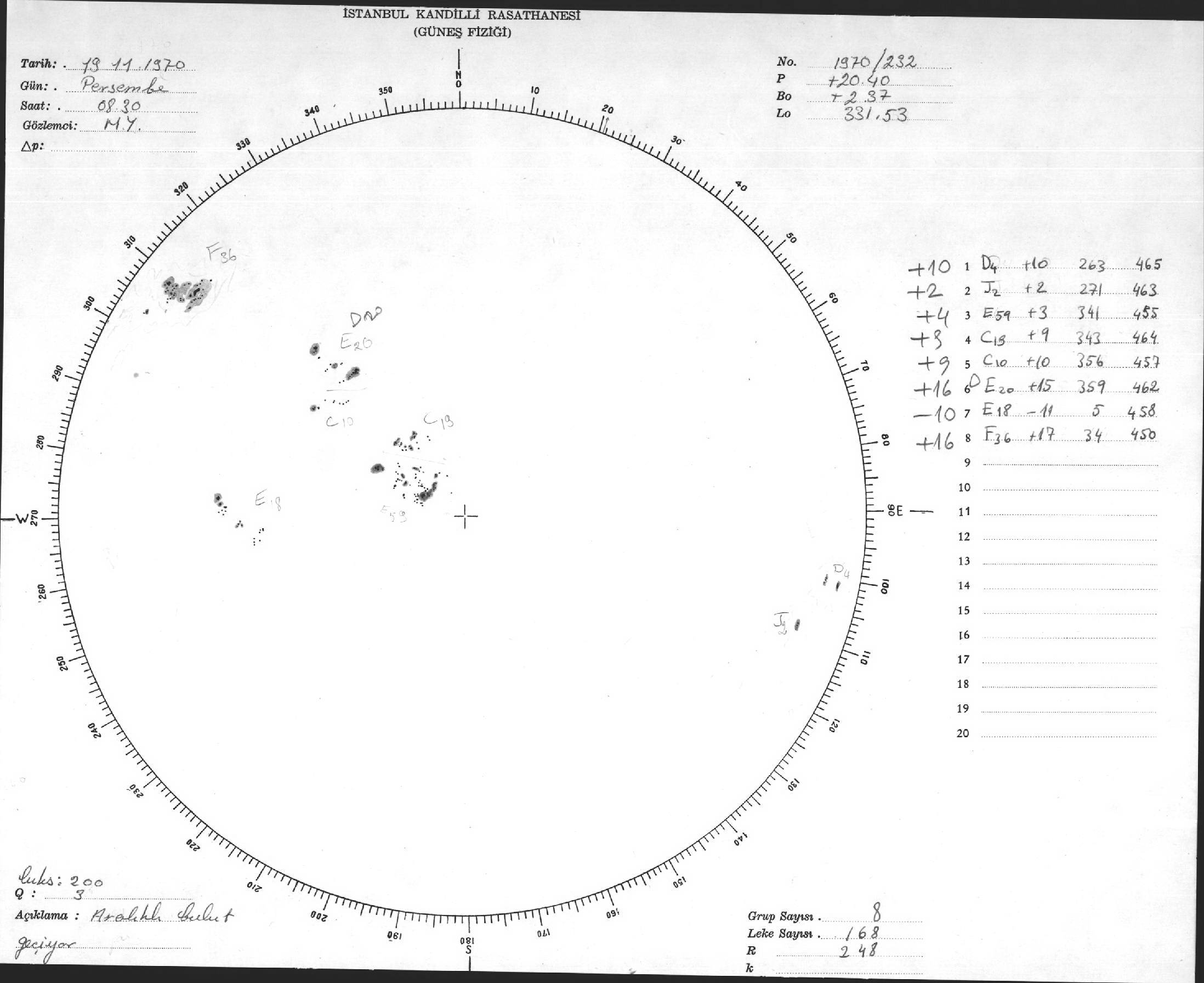 Güneş Lekesi Çizimi - 19.11.1970