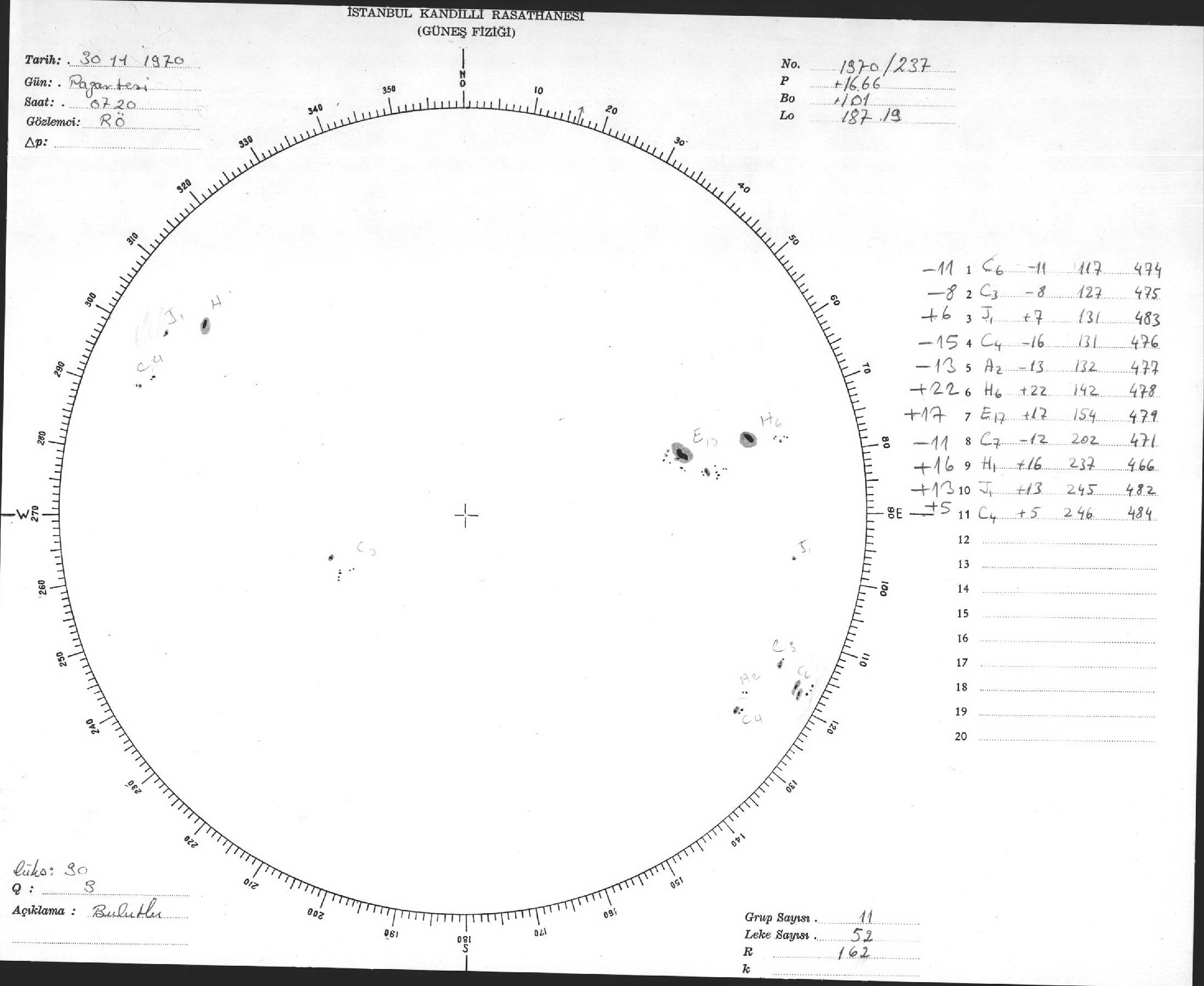 Güneş Lekesi Çizimi - 30.11.1970