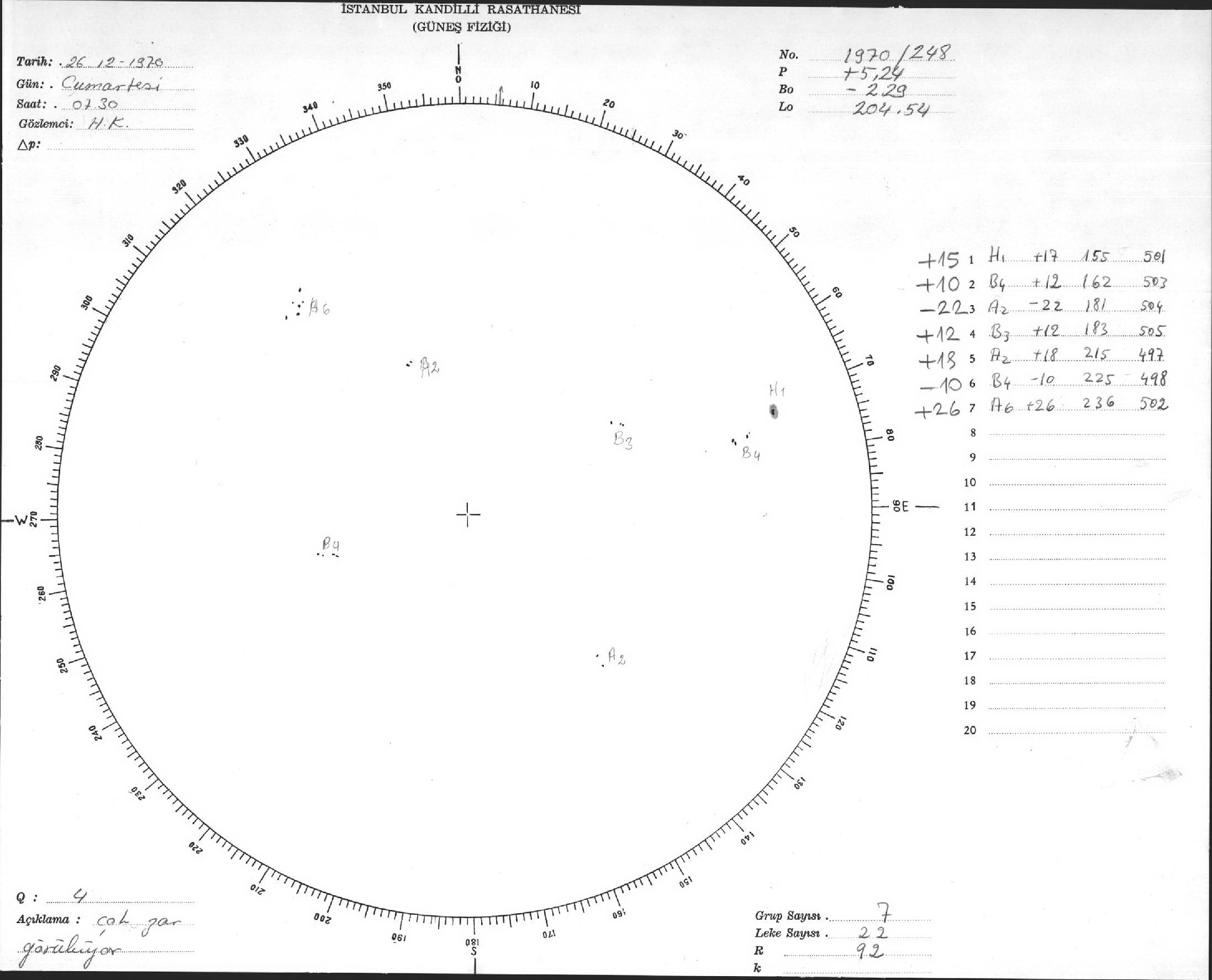 Güneş Lekesi Çizimi - 26.12.1970