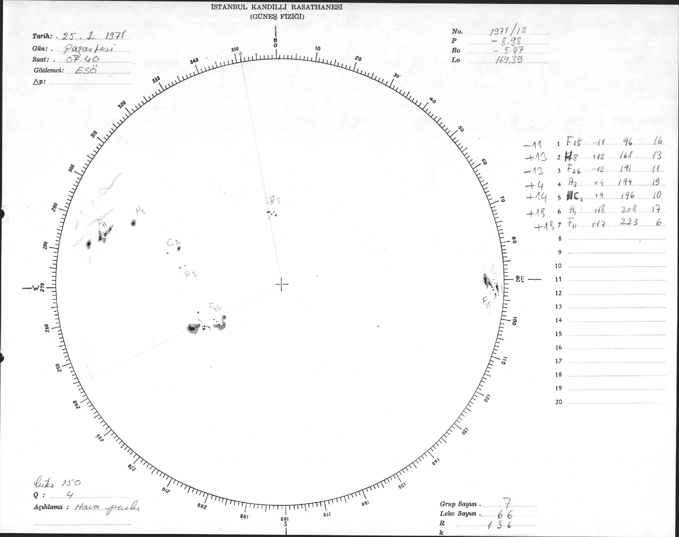 Güneş Lekesi Çizimi - 25.01.1971