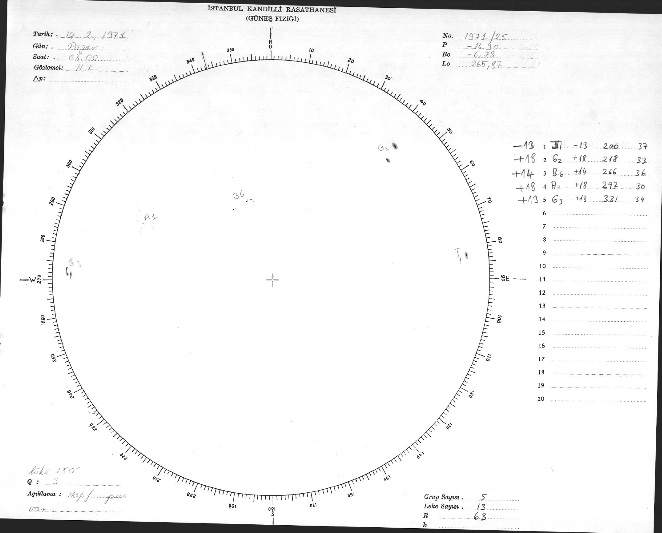Güneş Lekesi Çizimi - 14.02.1971