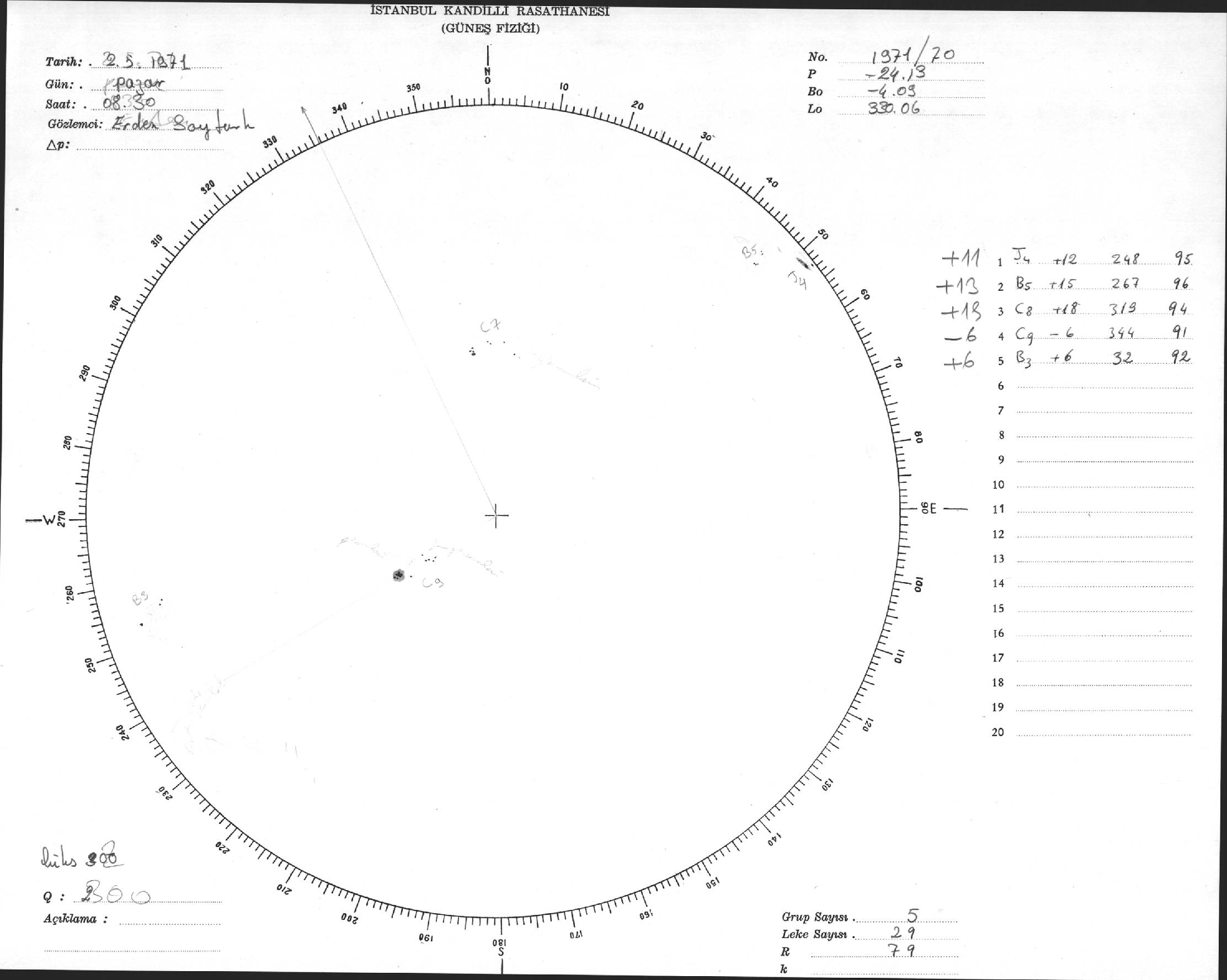 Güneş Lekesi Çizimi - 02.05.1971